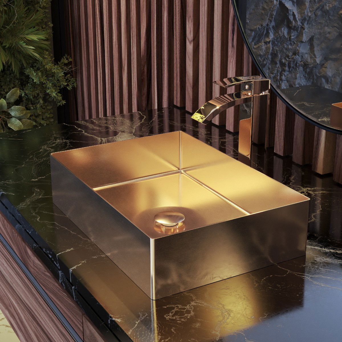 UMYWALKA STALOWA PROSTOKĄT NABLATOWA GOLDEN ROSE ZŁOTA ŁAZIENKA KOREK LAJA