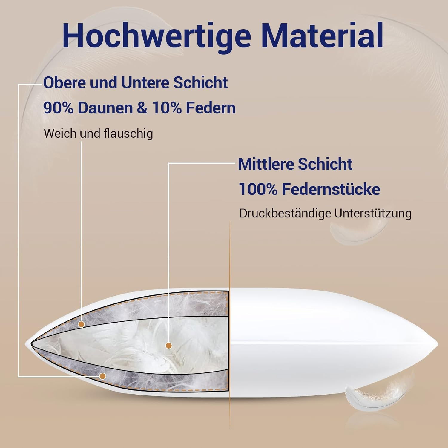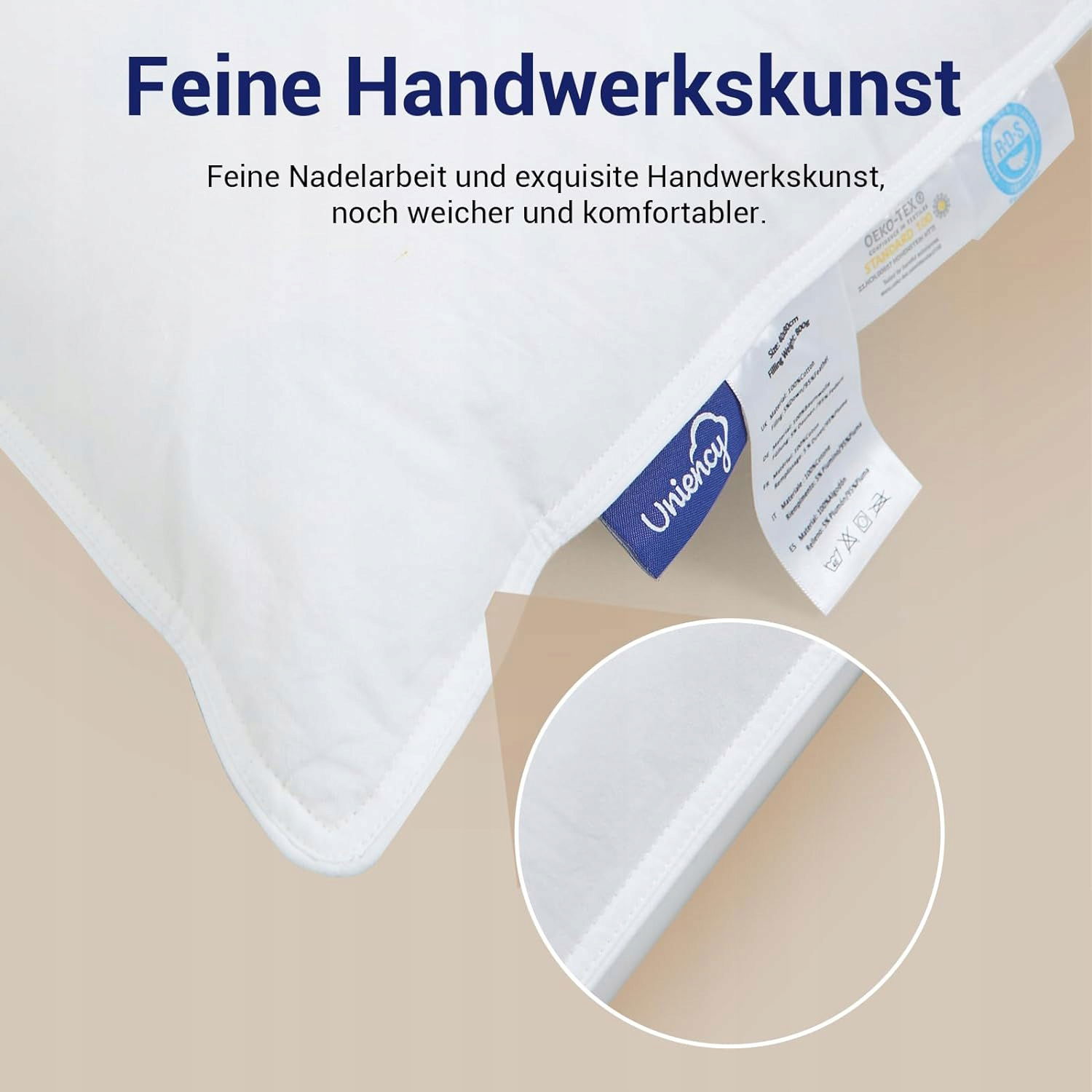 - ★ Wysokiej jakości wypełnienie – wypełnienie poduszki składa się z puchu i pierza i posiada certyfikat Öko-Tex i RDS. Spełnia rygorystyczne standardy agencji testowych i nie zawiera szkodliwych substancji ani sierści zwierząt.