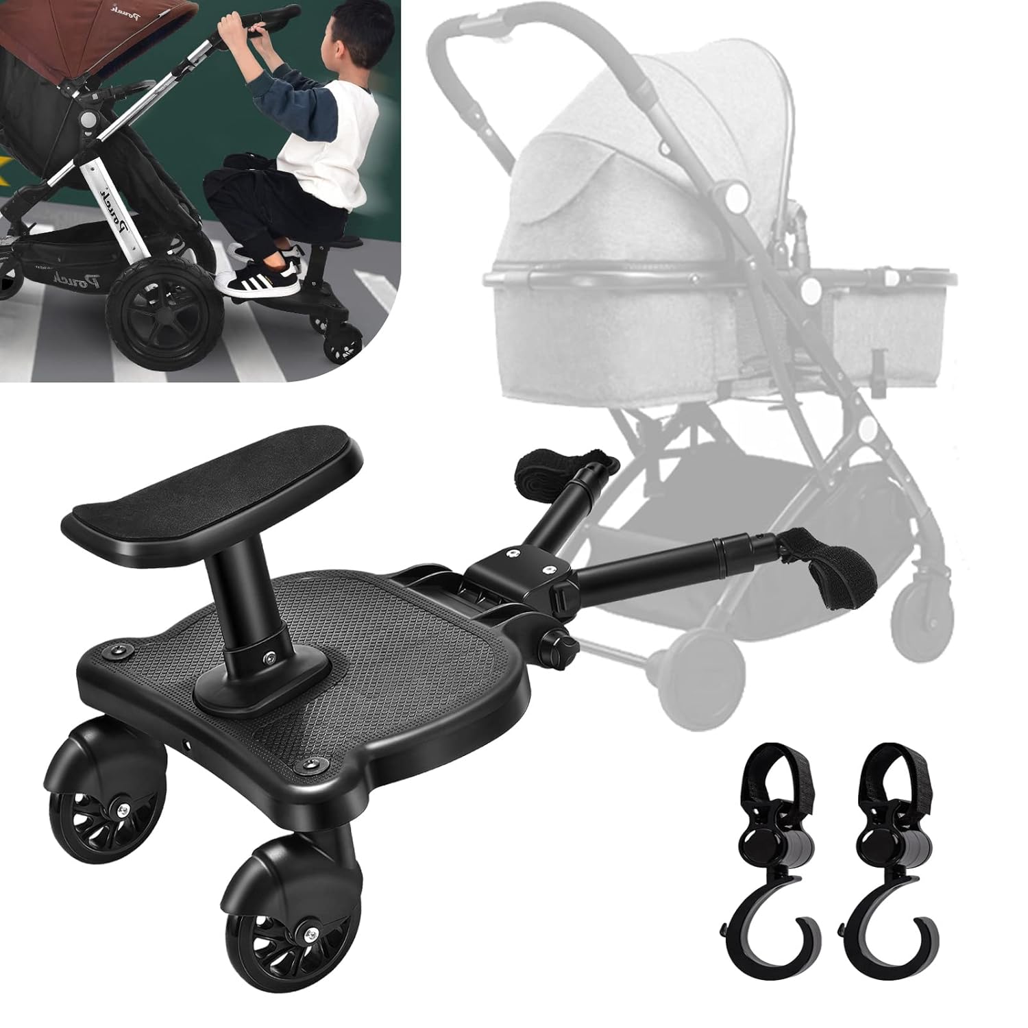 Vihir Kiddy Board deska do wszystkich wózków dziecięcych, z siedziskiem, uniwersalna, pasuje dla dzieci w wieku 2-6 lat, o maksymalnym obciążeniu 25 kg (czarna).