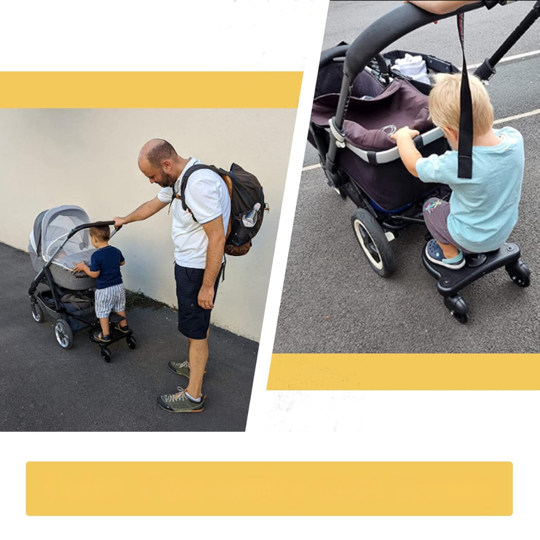 Dostawka do wózka umożliwia dzieciom wygodne siedzenie lub stanie podczas podróży.