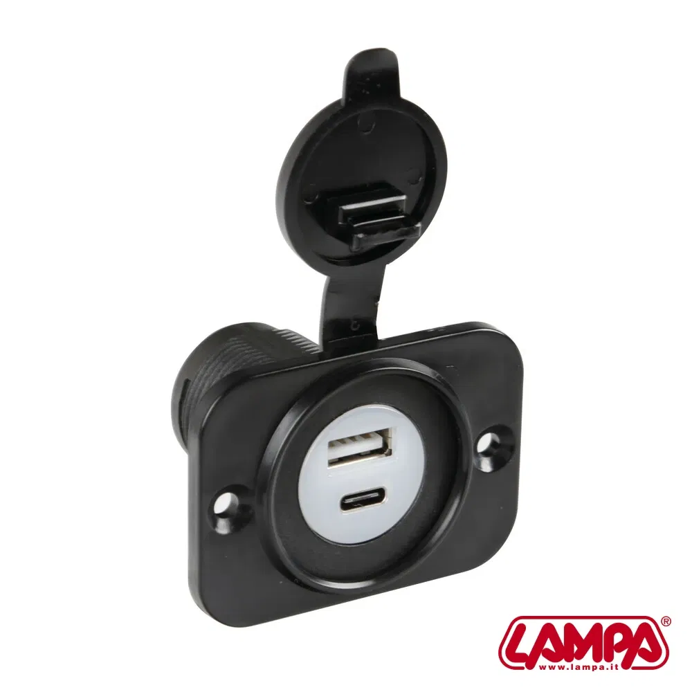Uniwersalna ładowarka motocyklowa USB A i USB C 12-24V Lampa | 39120 /// LAMPA