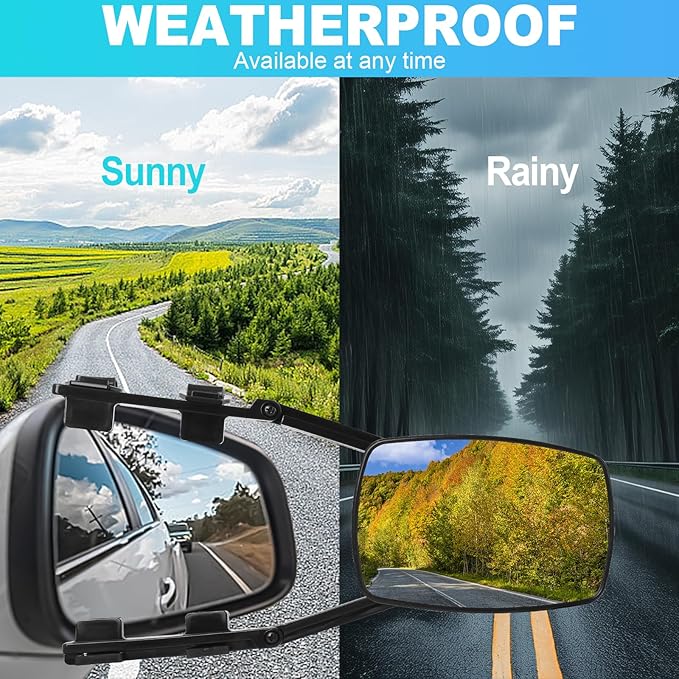 【Łatwa instalacja】 Montaż lusterka do przyczep kempingowych jest łatwy, bez narzędzi, wystarczy przymocować je do lusterka wstecznego samochodu i zamontować klips przedłużający do lusterka przyczepy, nie będzie pasował do oryginalnego lusterka wstecznego samochodu, łatwy w obsłudze.