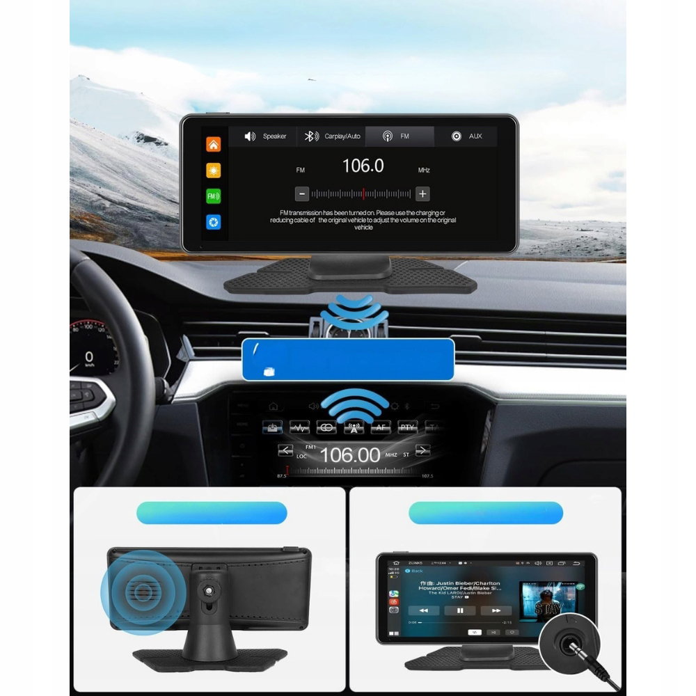 - Zastosowanie: urządzenie służy do wyświetlania i obsługi funkcji telefonu w samochodzie, takich jak nawigacja, muzyka, połączenia i aplikacje. Umożliwia bezpieczne korzystanie z Apple CarPlay i Android Auto bez konieczności wymiany fabrycznego radia. Jest przeznaczone do codziennego użytku w pojazdach w celu zwiększenia komfortu i funkcjonalności jazdy.
