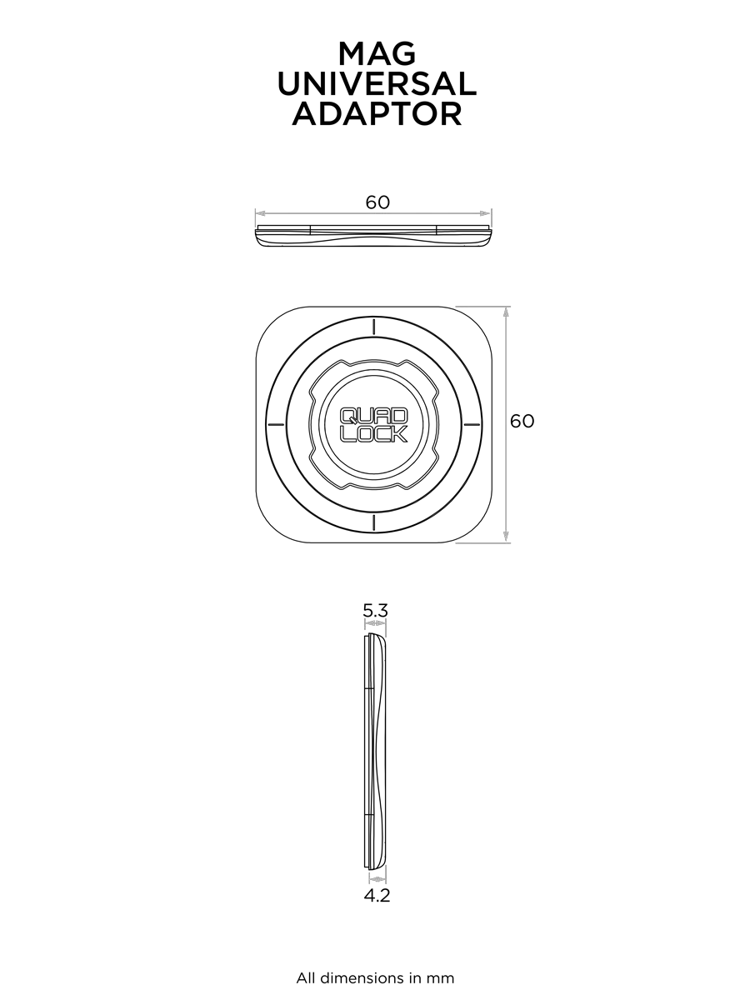Posiadający tylko 5.3mm grubości, uniwersalny adapter Quad Lock MAG pasuje bez problemu na tylną część smartfonów oraz etui.