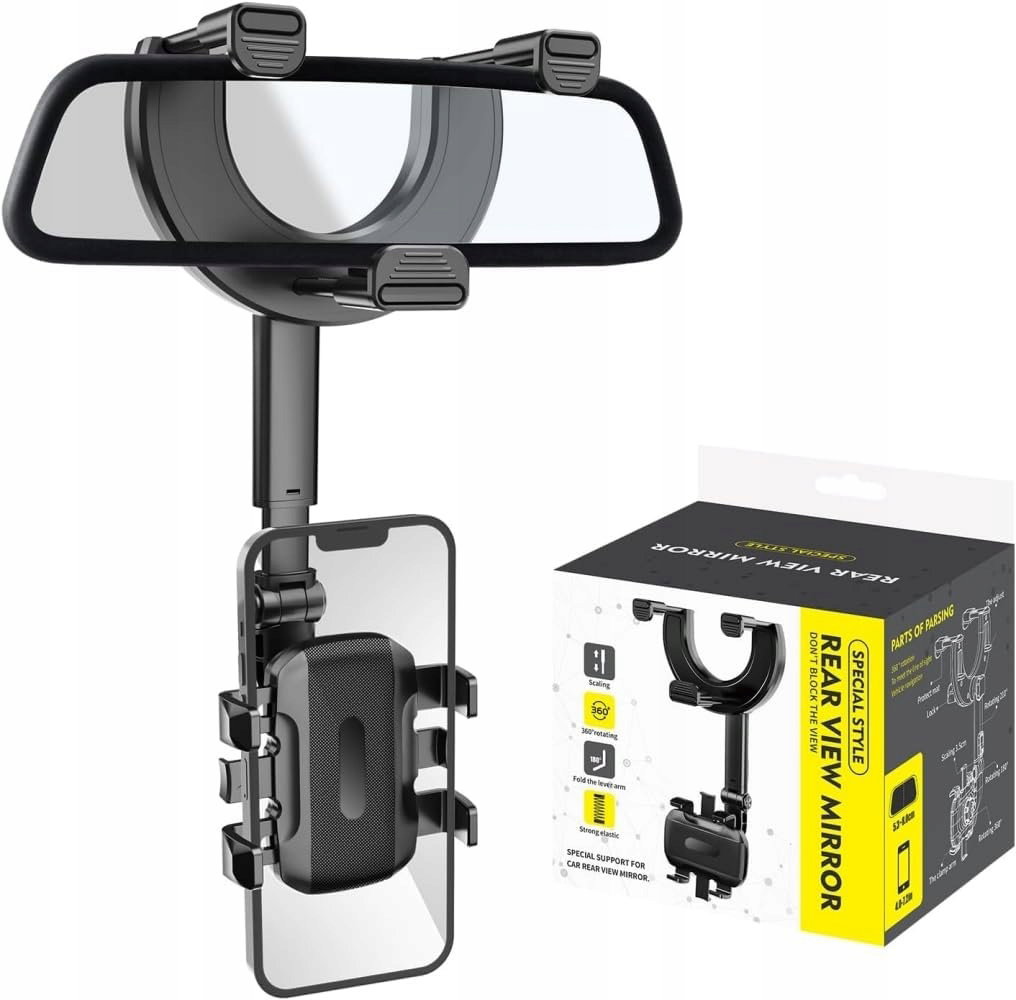 DMJWAN Uniwersalny obrotowy uchwyt samochodowy na telefon 360° do lusterka wstecznego, kompatybilny z większością smartfonów