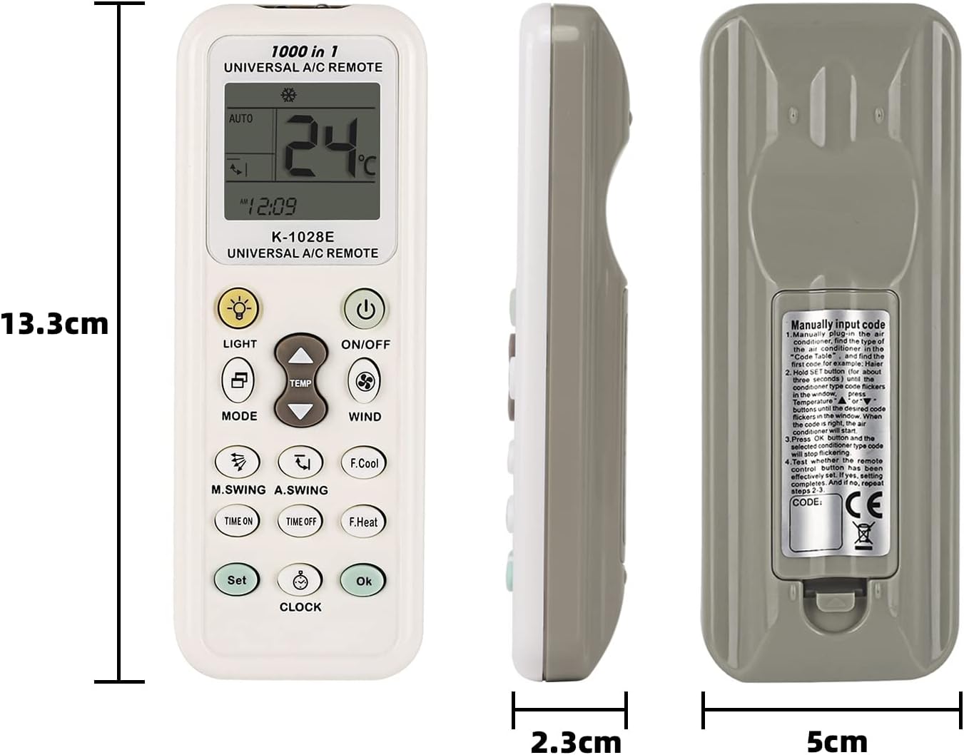✅ Szeroka kompatybilność: uniwersalny pilot K-1028E w 100% nowy i wysokiej jakości jest kompatybilny z 99% markami klimatyzatorów, takimi jak Gree, Carrier, Midea, LG, Samsung, Daiki, Fujitsu, Hitachi, Panasonic, Sanyo, Sharp, Haier, Mitsubishi, TCL, Toshiba, Hisense, Whirlpool, Hyundai i ponad 1000 marek. (Ale nie do okien / przenośnych klimatyzacji)