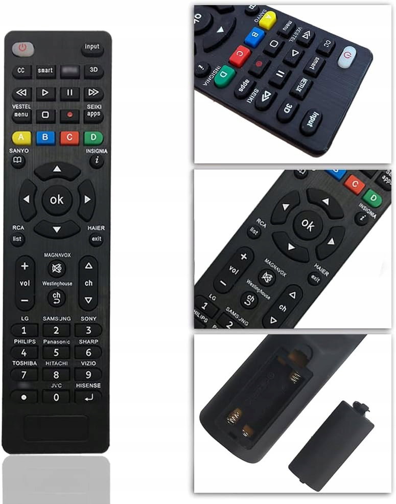 - Zastosowanie: pilot obsługuje telewizory Samsung, LG, Sony, Panasonic, Philips, Toshiba, Sharp, TCL, Hisense, Haier i Hitachi, zapewniając szeroką kompatybilność dla najpopularniejszych Smart TV. Może służyć jako szybki zamiennik utraconego, uszkodzonego lub zużytego pilota, zachowując pełną funkcjonalność podstawowych i multimedialnych poleceń.