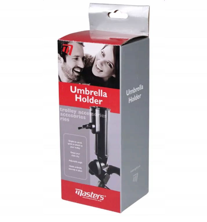 Ten uniwersalny, luksusowy i regulowany uchwyt na parasole marki Silverline pasuje do każdego wózka golfowego z okrągłą ramą lub uchwytem. Również do wózków golfowych z fabrycznie zamontowanym punktem mocowania. Kabura ma regulowaną szerokość, dzięki czemu pasuje do różnych uchwytów parasoli.