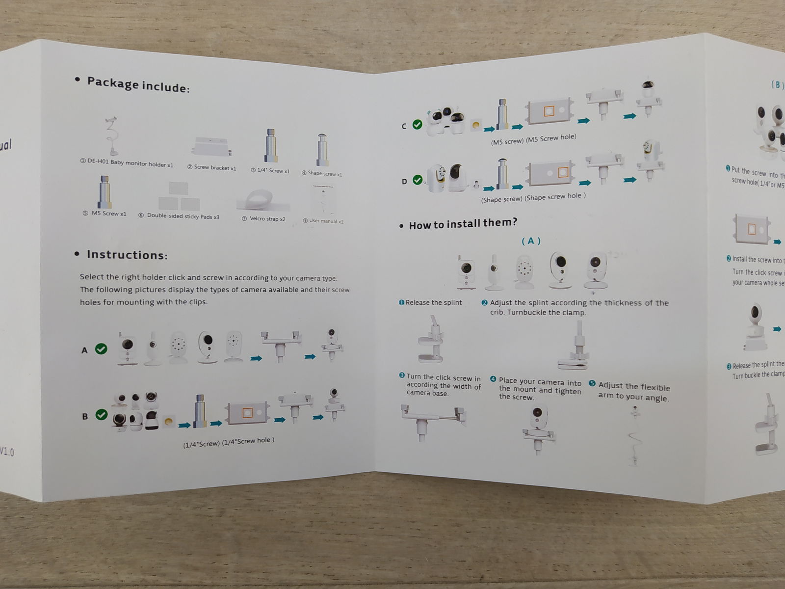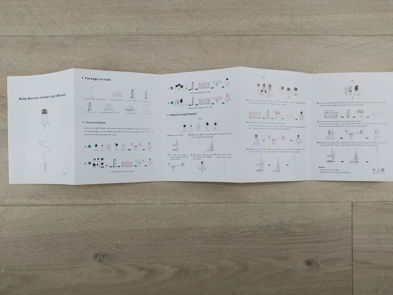 Uchwyt jest kompatybilny z kamerami baby monitorów posiadającymi otwory na śruby M5, otwory 1/4" lub formowane otwory montażowe. W zestawie znajdują się odpowiednie śruby: 1/4", M5 oraz formowana śruba.