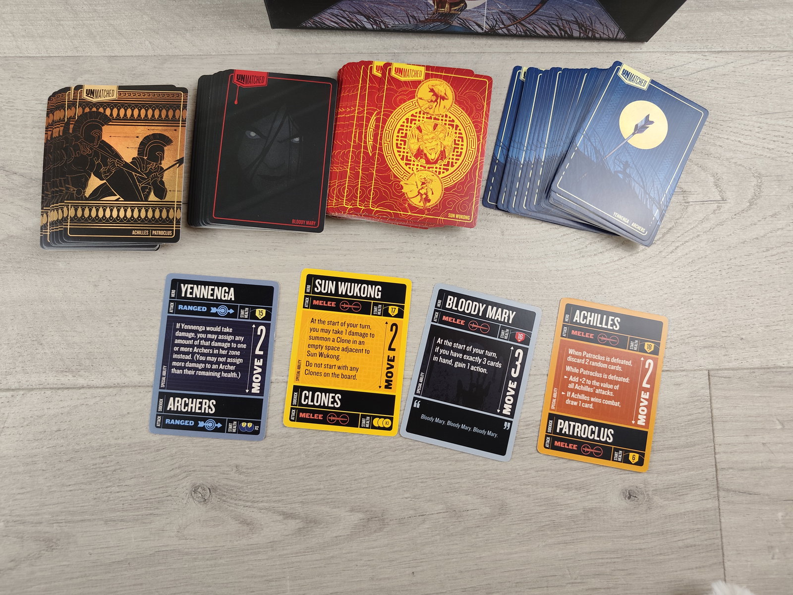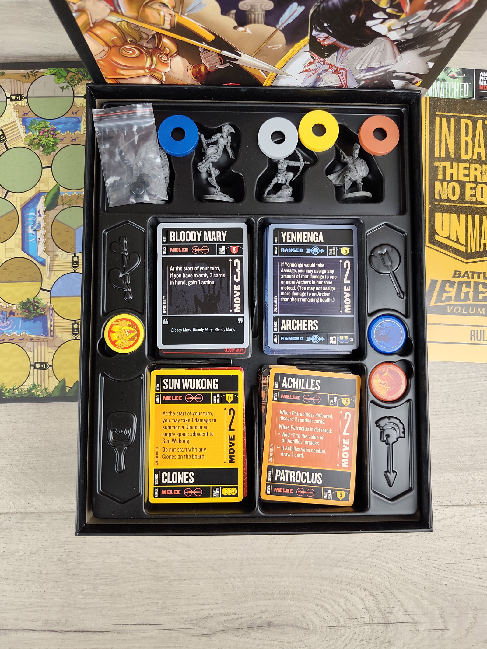 ⚔️ Unmatched: Battle of Legends Vol. 2 Dynamiczna gra planszowa, w której legendy z różnych epok stają do pojedynku bez równych sobie! W zestawie znajdziesz cztery wyjątkowe postacie: Sun Wukong, Achilles, Yennenga i Bloody Mary — każda z nich ma unikalne zdolności, talię kart i styl walki. Gra łączy taktykę, emocje i piękne wykonanie, tworząc niezapomniane starcia 🔥