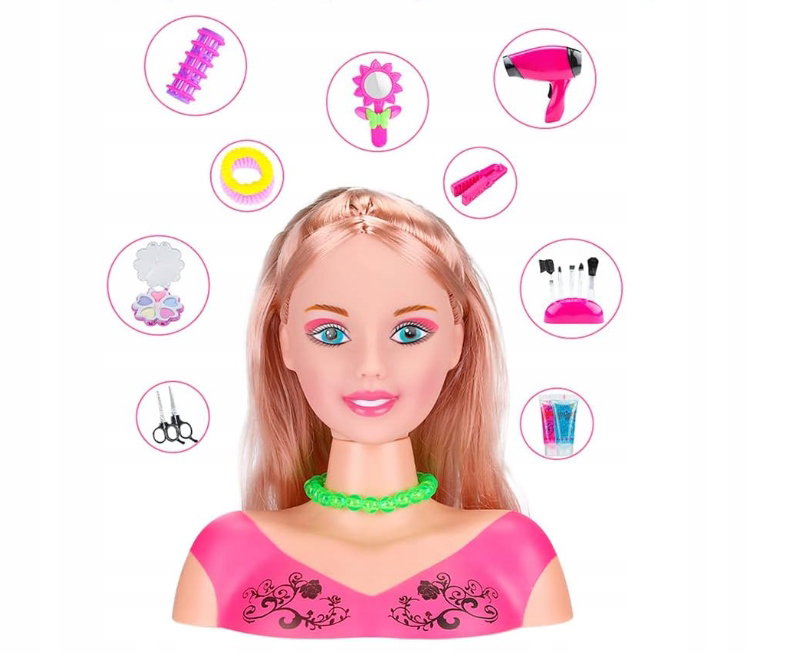 - ✴️Włosy syntetyczne: Włosy są bardzo proste, niełatwe do wiązania, miękkie i łatwe do stylizacji. Możesz tworzyć różne fryzury i style. Jest to dobra zabawka, aby dzieci uczą się stylizacji i makijażu.