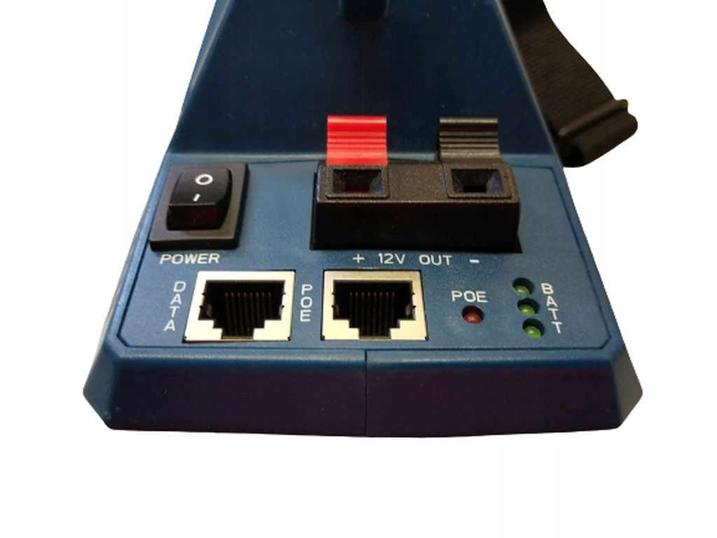Dzięki wbudowanej baterii możesz łatwo zasilać dowolną kamerę PoE lub inne dowolne urządzenie zasilane w ten sposób. Urządzenie ma 2 połączenia Ethernet, do których podłączasz aparat i laptopa.