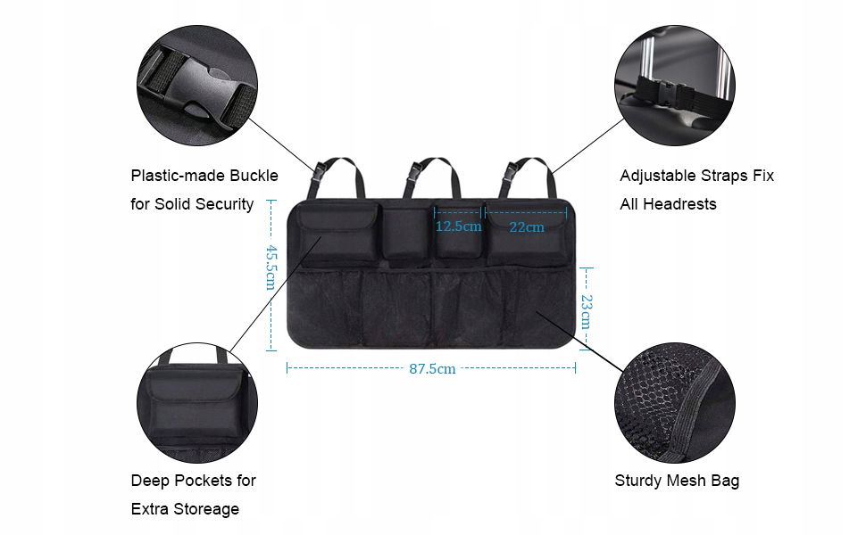 ⭐Duża Pojemność i Praktyczność: Z 8 dużymi kieszeniami, nasz organizer oferuje mnóstwo miejsca do przechowywania i organizowania różnorodnych przedmiotów. Bez trudu zmieścisz w nim książki, czasopisma, przekąski, napoje, klucze czy zabawki dla dzieci, zapewniając sobie komfort podczas podróży.
