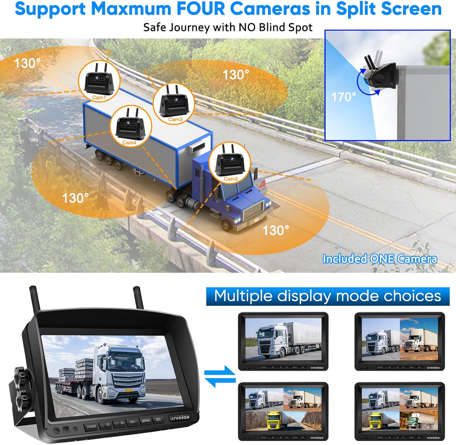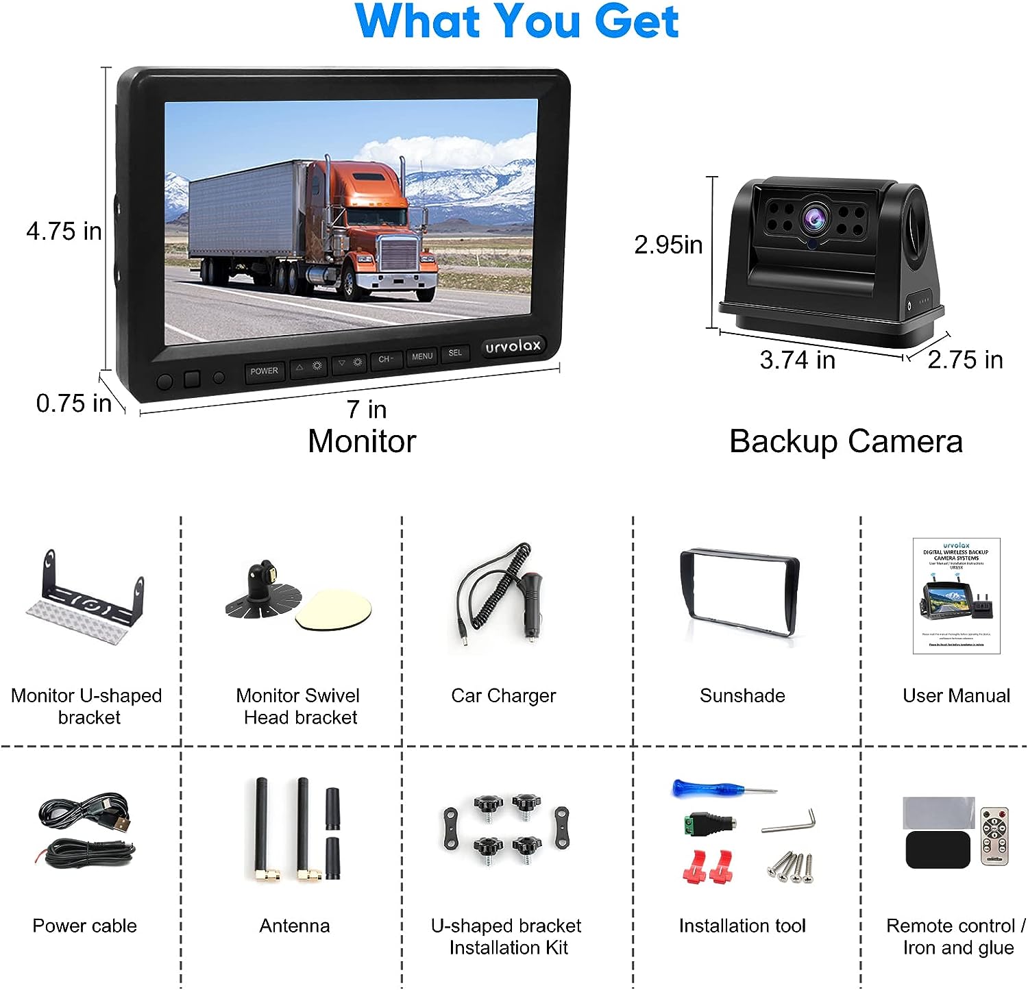 URVOLAX UR65X Zestaw kamery cofania, 7'' monitor 1296P do kampera ciężarówki
