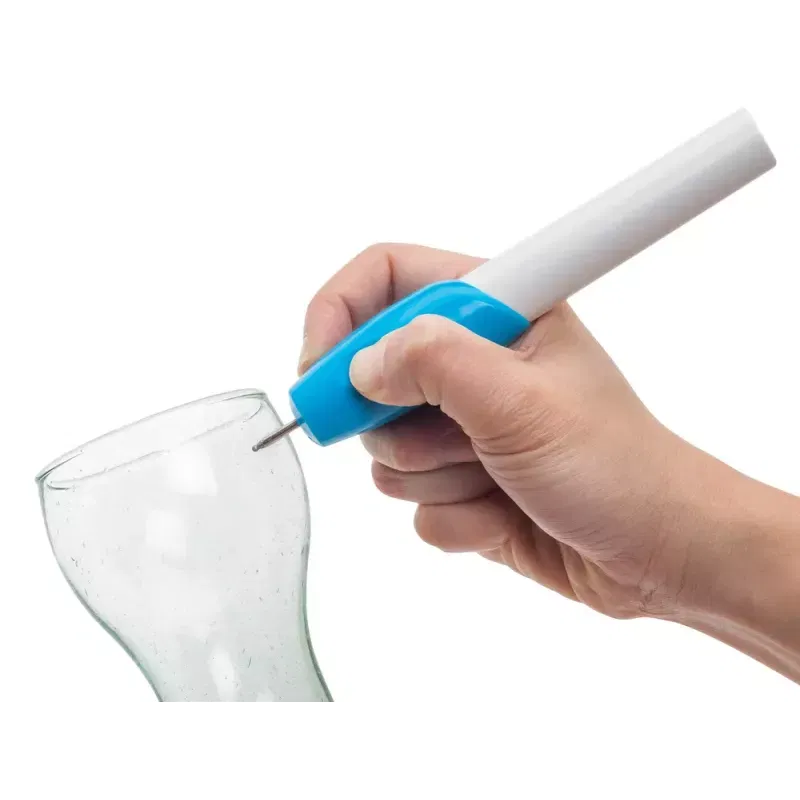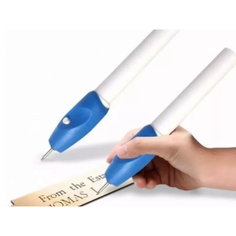 Dzięki swojemu kształtowi, świetnie leży w dłoni, co pozwala na precyzyjną pracę. Przycisk włączania umiejscowiony jest w miejscu gdzie trzymamy kciuk, umożliwia to stałą kontrolę nad pracą urządzenia. W zależności od tego co chcemy wygrawerować, mamy do wyboru dwie, różnej grubości końcówki.