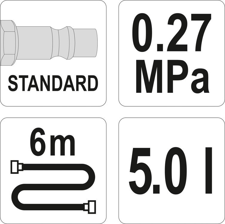 specjalny zbiornik wysokiego ciśnienia o poj. 5 L pozwala na wcześniejsze napełnienie sprężonym powietrzem, dzięki czemu urządzenie może pracować bez konieczności stałego zasilania
