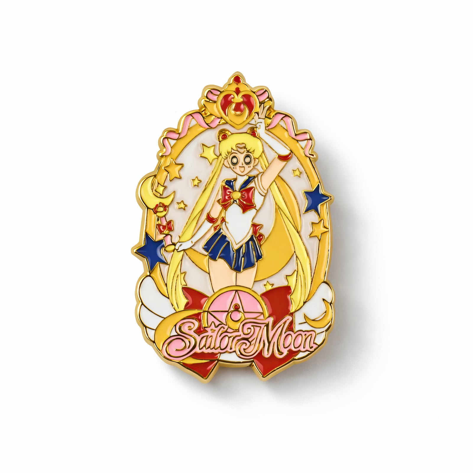 Urocze, miniaturowe uhonorowanie uwielbianej postaci z Sailor Moon. Ta pięknie wykonana metalowa przypinka oddaje esencję kultowej serii anime. Prezentuje delikatny projekt o wysokości 8 centymetrów, ukazujący wdzięczną formę Usagi Tsukino w jej charakterystycznym stroju Sailor Moon. Przypinka wykonana jest z wysokiej jakości metalu z polerowanym wykończeniem, które podkreśla skomplikowane detale w ubraniach i akcesoriach postaci. Ten zachwycający element stanowi idealny dodatek do kolekcji każdego fana Sailor Moon lub doskonały prezent dla osób ceniących biżuterię i akcesoria inspirowane anime. Kompaktowy rozmiar umożliwia łatwe przymocowanie do torebek, kurtek lub ubrań, a wytrzymała metalowa konstrukcja zapewnia trwałość podczas codziennego użytkowania i długotrwałą ochronę wspomnień o tej ukochanej postaci. Obowiązkowy przedmiot dla fanów poszukujących autentycznego odwzorowania ikonicznego wyglądu ukochanej Księżniczki Serenity w miniaturze.