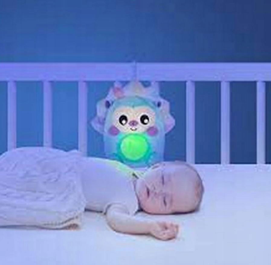 Zabawka rozpoznaje płacz dziecka i automatycznie uruchamia wybrany przez Ciebie tryb, aby ukoić dziecko i ponownie uśpić.