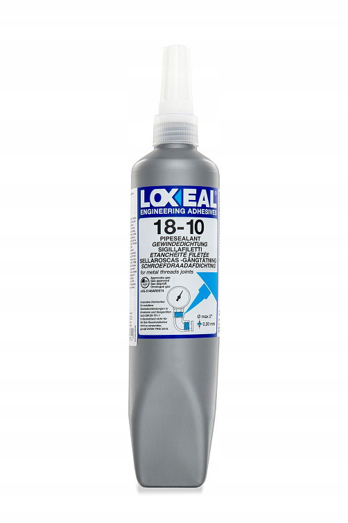 ✅ LOXEAL 18-10 to jednoskładnikowy anaerobowy środek niskiej wytrzymałości z wydłużonym czasem polimeryzacji, idealny do uszczelniania gwintów stożkowo-cylindrycznych dużych elementów hydraulicznych i pneumatycznych.