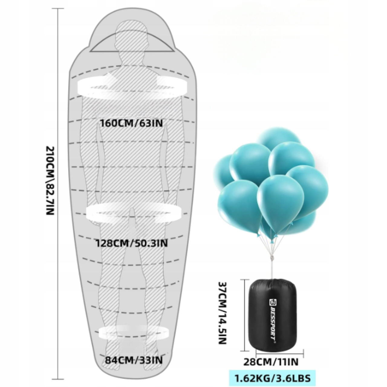 ✅ Trzy zakresy temperatur – komfort: 5°C, graniczna: 0°C, ekstremalna: -9°C, co pozwala używać śpiwora przez 3-4 sezony.