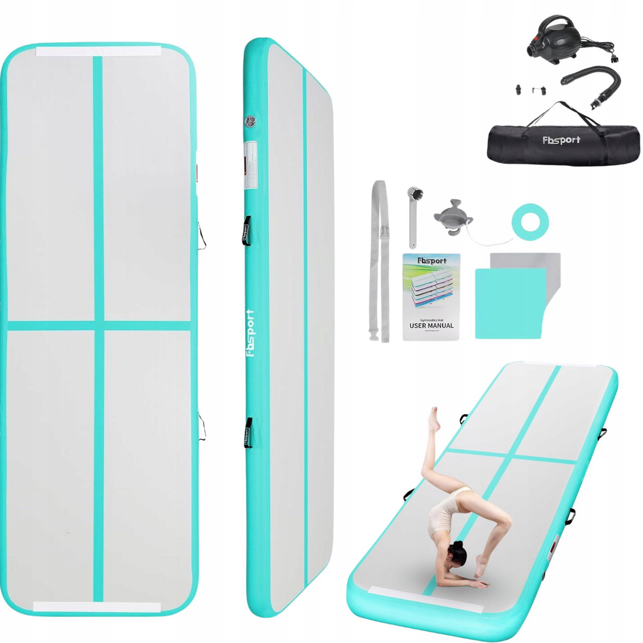 uszkodzony Materac gimnastyczny 3m z pompką elektryczną Fbsport tkanina PCV
