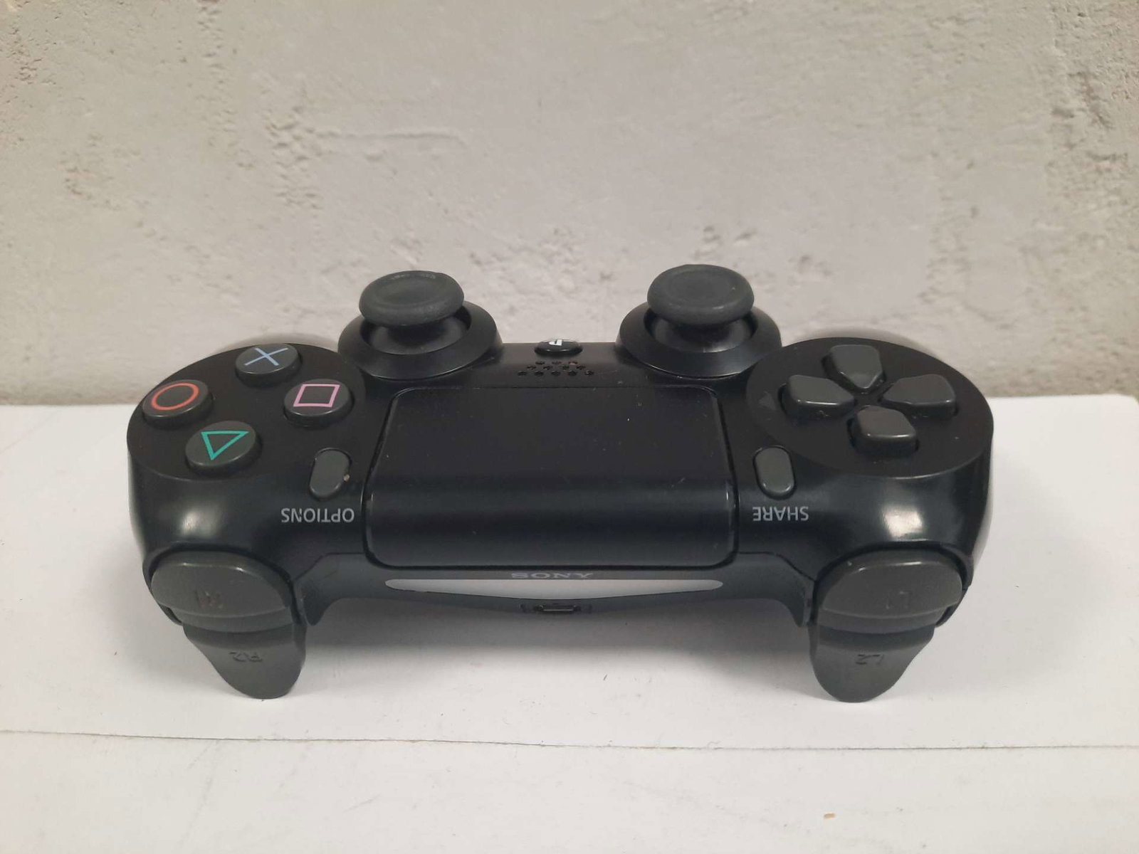 Cechy produktu: Posiada mocne ślady użytkowania, Uszkodzony - Oba drążki dryfują, nie działa przycisk PS, przyciski SHARE i OPTIONS słabo odbijają