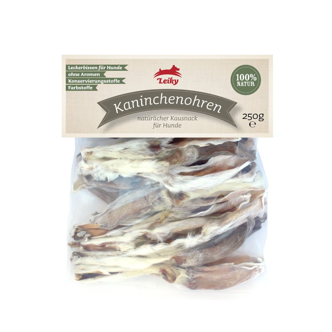 Uszy królicze z sierścią dla psa 250g | naturalny gryzak | bogate w wapń i kolagen | Leiky