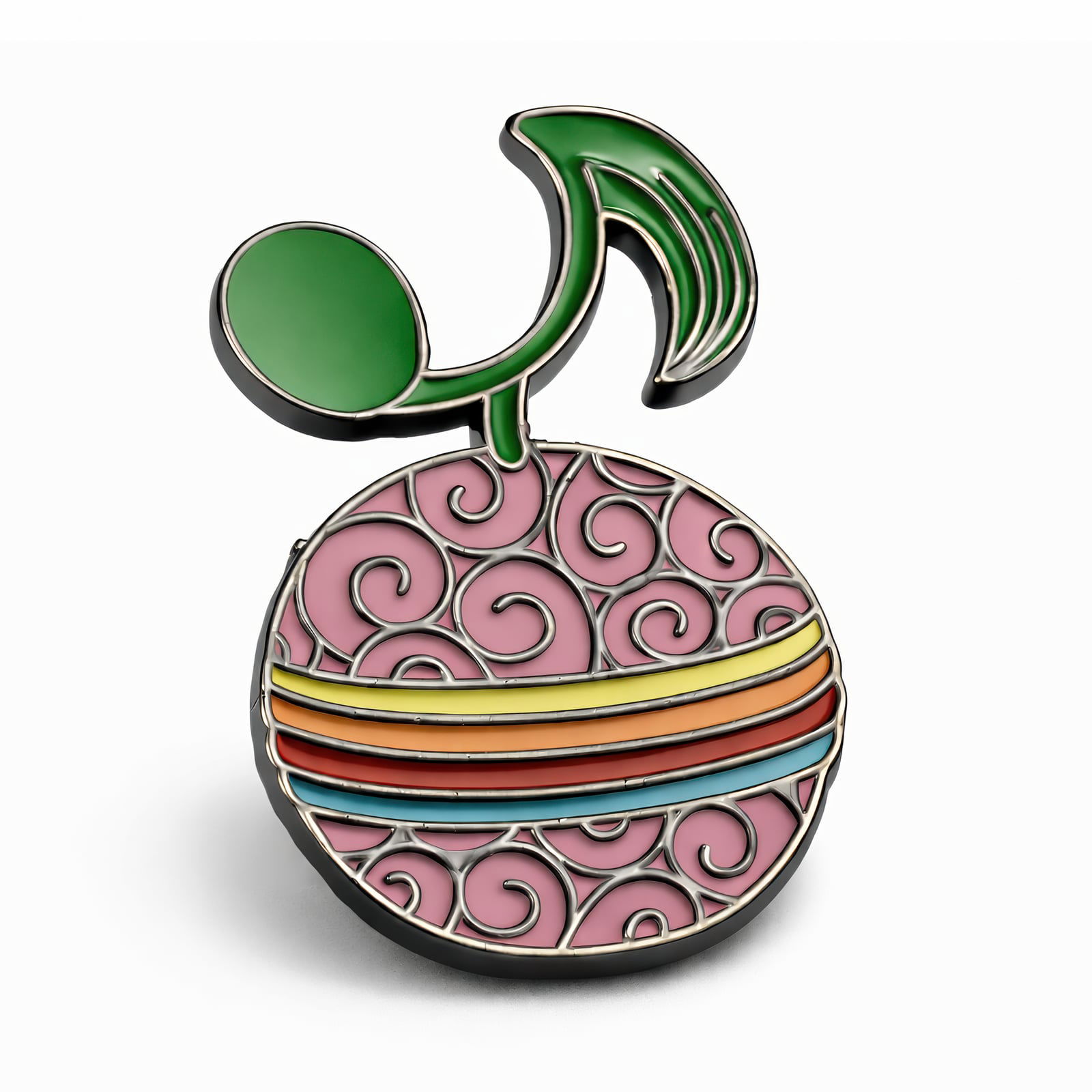 Niektórzy twierdzą, że spożycie Uta Uta no Mi daje moc ukojenia każdej duszy, ale ta miniaturowa wersja nie wymaga podróży po świecie. Wykonana z trwałego metalu, pin 4 cm uchwyca ikoniczne owoce z żywymi warstwami kolorów i skomplikowanymi detalami filigranowymi — hołd dla melodii, które w sobie nosi. Błyszcząca, szmaragdowa zielona łodyga i kula kontrastują pięknie z wirującą różową podstawą, zakończone bezpiecznym zapięciem na długotrwałe noszenie. Dodaj odrobinę śpiewu do swojej kurtki, torby lub kolekcji pinów.