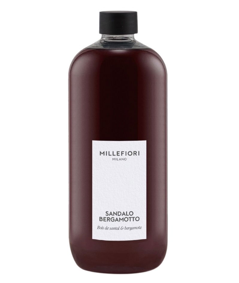 Uzupełniacz do pałeczek zapachowych marki Millefiori MILANO o aromacie SANDALO BERGAMOTTO. Butelka z olejkiem przeznaczonym specjalnie do dyfuzorów z patyczkami. Drzewne aromaty sandałowca połączone z nutą cytrusów i lawendy doskonale sprawdzą się w salonie, sypialni czy biurze, dodając wnętrzu elegancji i świeżości.