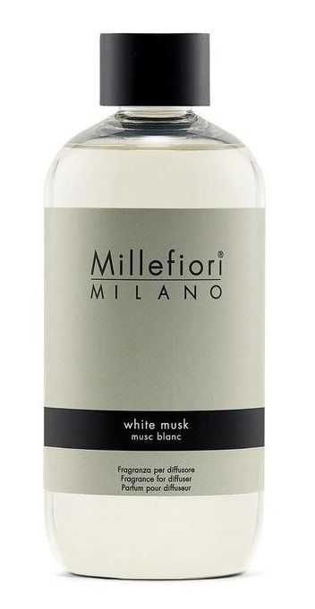 Uzupełniacz do pałeczek zapachowych marki Millefiori MILANO o aromacie WHITE MUSK. Butelka z olejkiem przeznaczonym specjalnie do dyfuzorów z patyczkami. Pudrowe nuty białych kwiatów połączone z aromatem świeżych ziarenek wanilii doskonale sprawdzą się w salonie, sypialni czy biurze, dodając wnętrzu elegancji i świeżości.