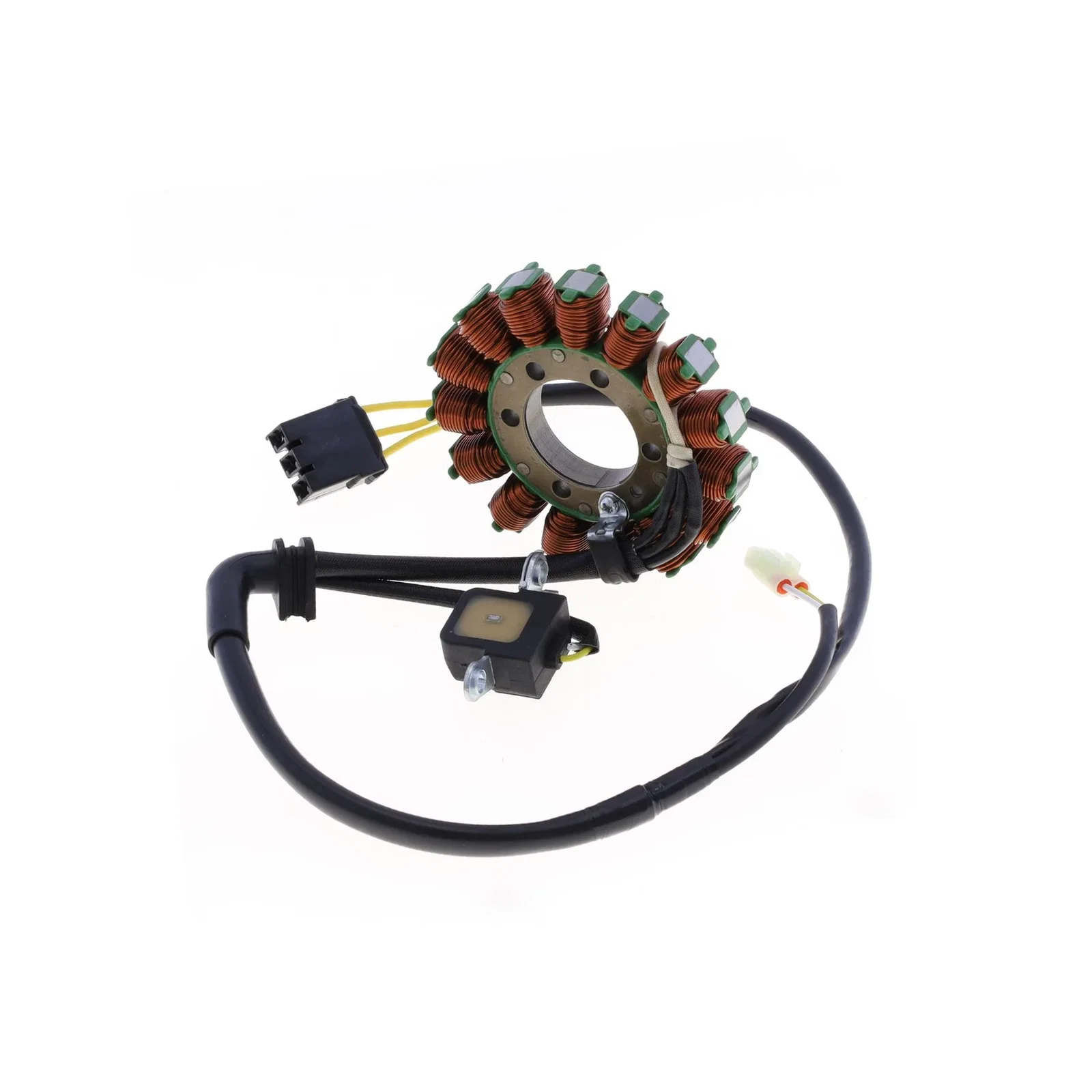 Athena S410210394006 to wysokiej jakości uzwojenie alternatora (stator), kluczowy element układu ładowania motocykla. Odpowiada za generowanie prądu przemiennego niezbędnego do zasilania instalacji elektrycznej i ładowania akumulatora. Produkt jest zamiennikiem części OEM, zaprojektowanym w celu zapewnienia niezawodności i trwałości.