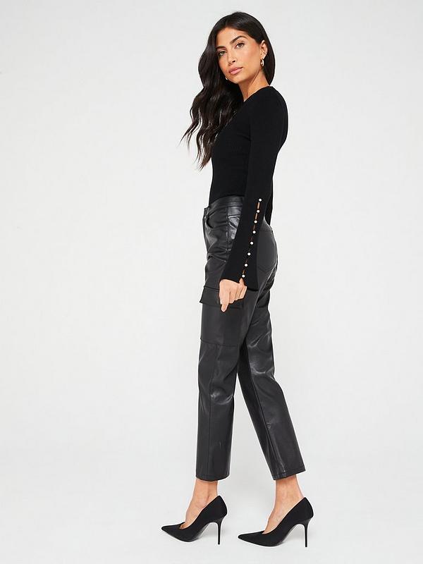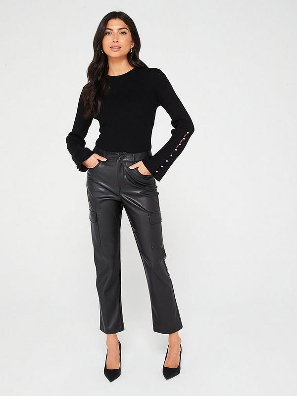 V BY VERY Czarne spodnie imitacja skóry (40)