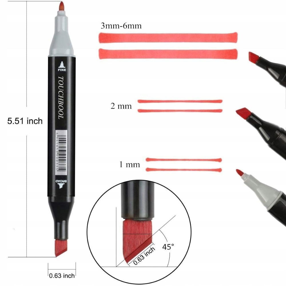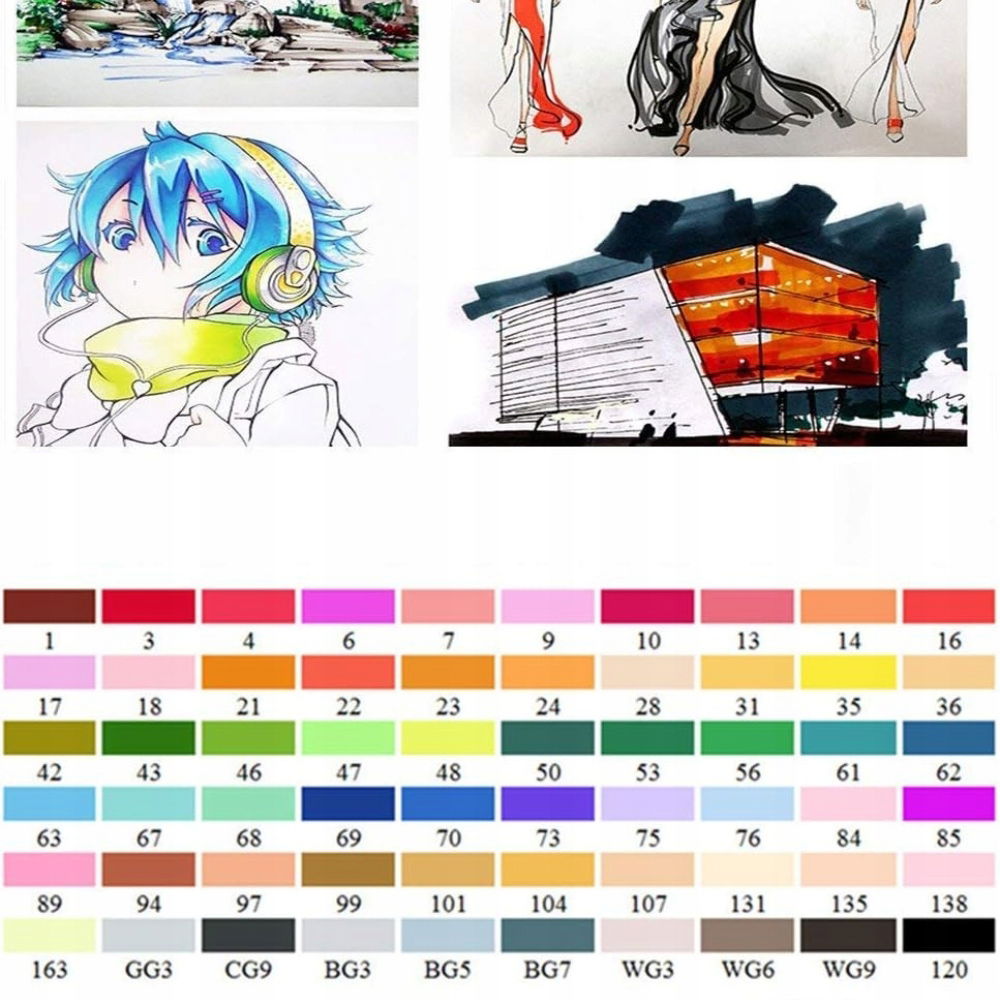 Każdy marker wyposażony jest w dwie końcówki: precyzyjną, cienką do detali i grubą, ściętą do cieniowania oraz większych powierzchni. To doskonałe narzędzie zarówno do dokładnych ilustracji, jak i ekspresyjnych szkiców.