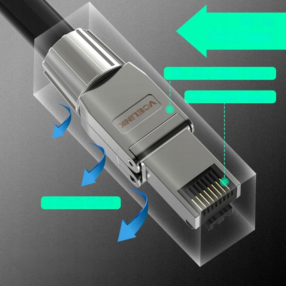 Postaw na profesjonalne i szybkie połączenie LAN, bez użycia narzędzi! Ekranowane złącze VCELINK RJ45 Cat7/Cat6A to doskonałe rozwiązanie do instalacji, naprawy i modernizacji sieci – gotowe do montażu w 2 minuty, nawet przez amatora.