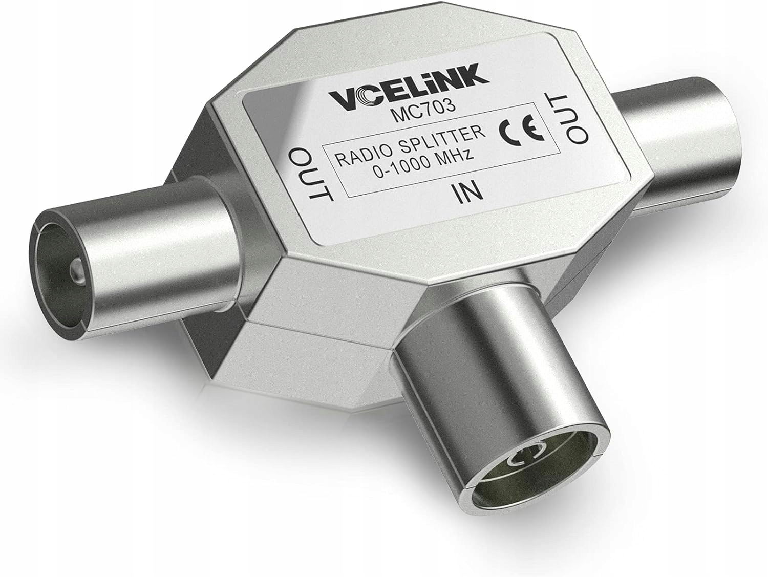 VCELINK T-sprzęgło antenowe, rozdzielacz TV, 2x wtyczka koncentryczna