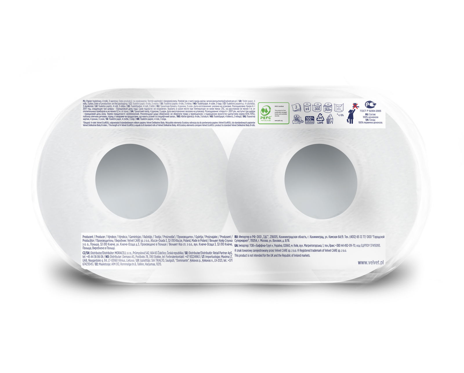 Velvet ecoRoll papier toaletowy Delikatnie Biały 4 sztuki