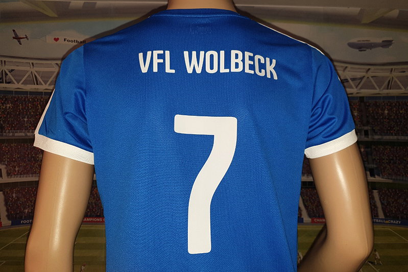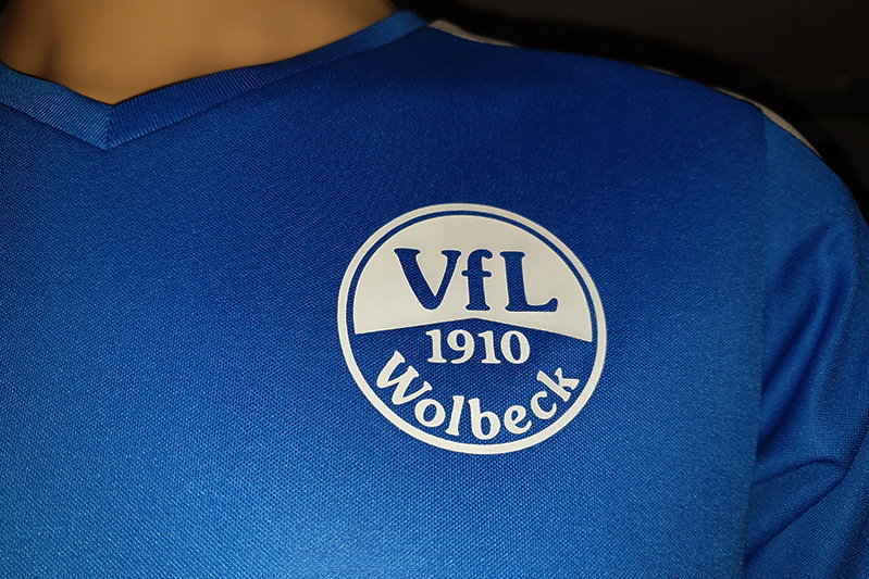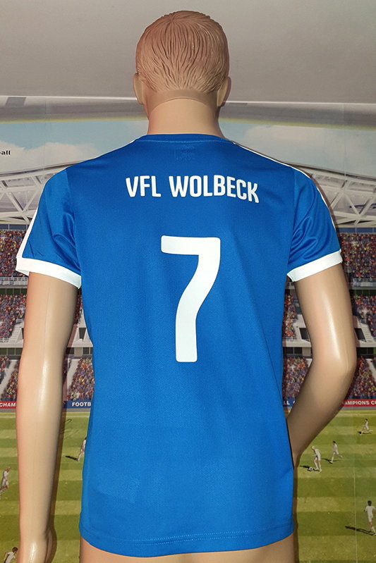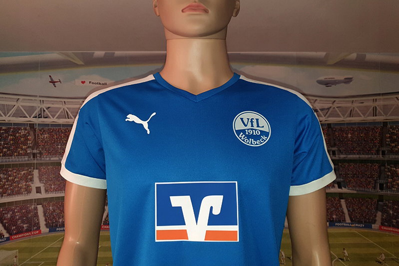 Piłkarska koszulka drużyny występującej w niemieckiej Bezirksliga 12 (VIII liga) – VfL Wolbeck 1910 (Verein für Leibesübungen VfL Wolbeck 1910 e.V.), wyprodukowana przez koncern Puma /DryCell/.