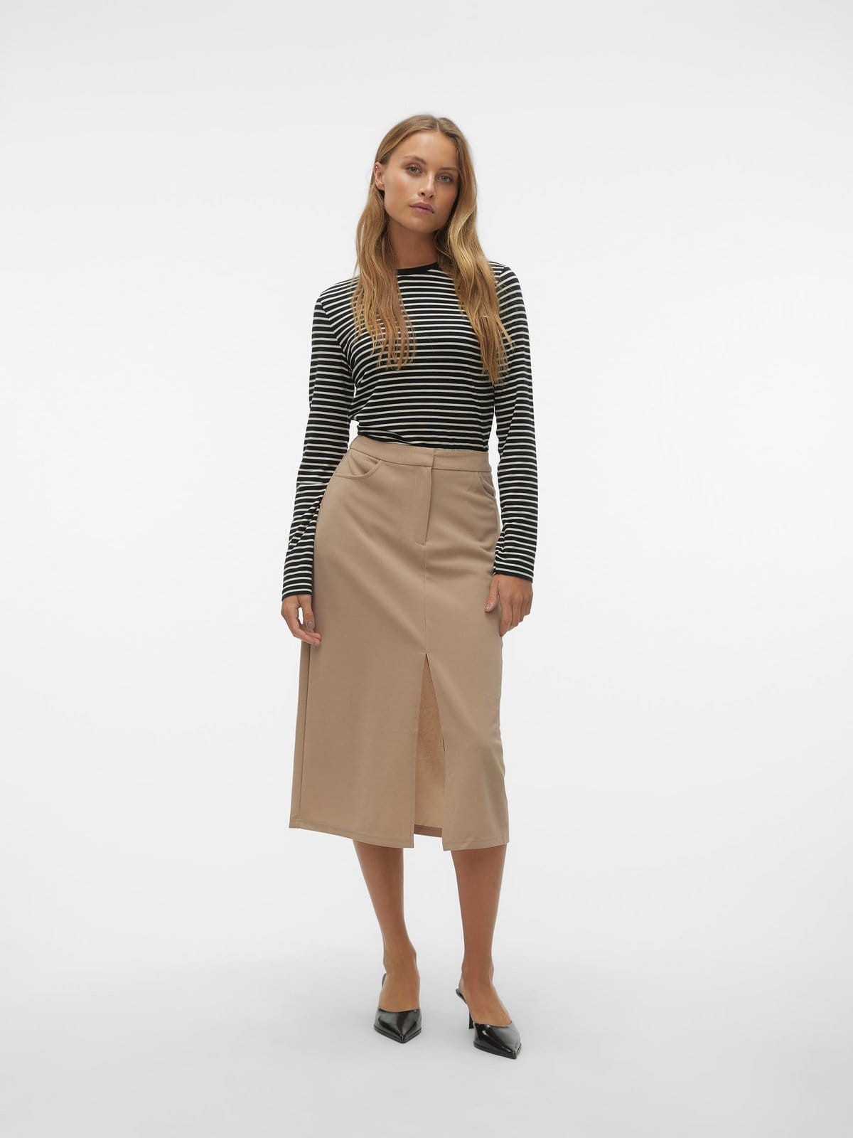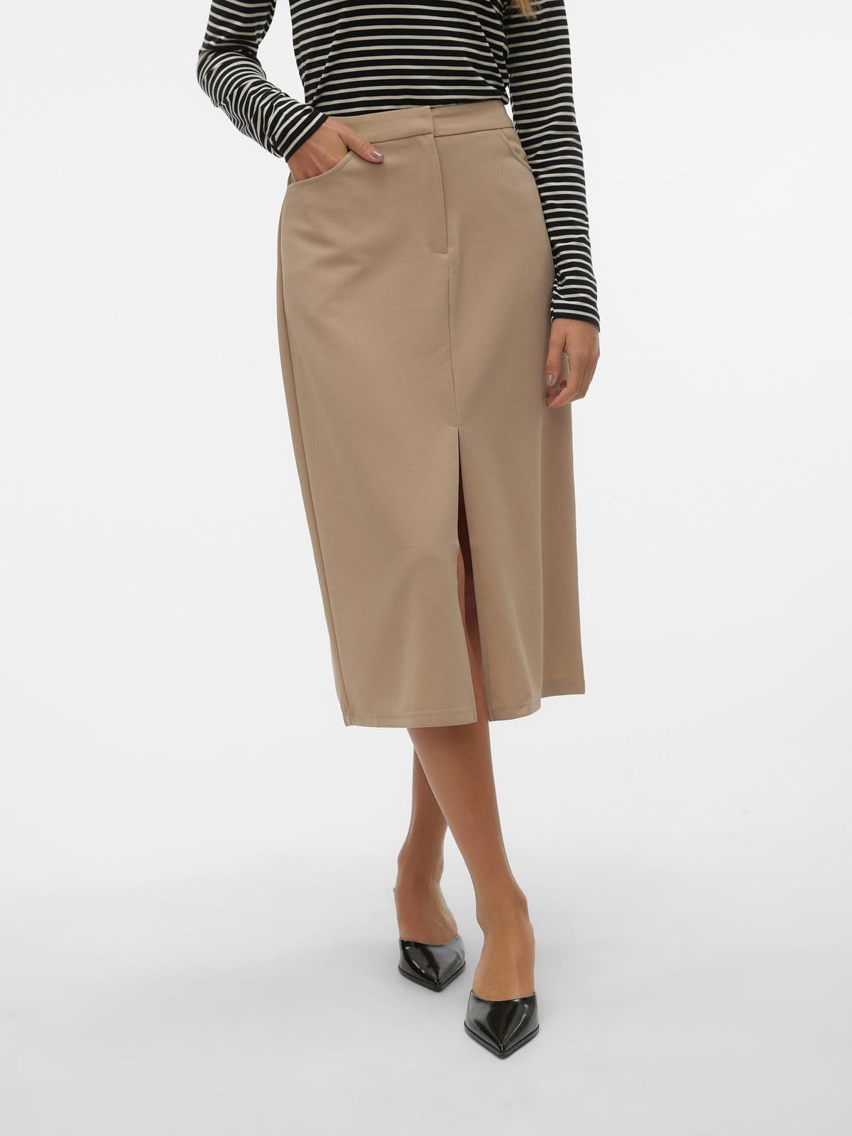 VERO MODA Beżowa spódnica midi kieszenie (XL)