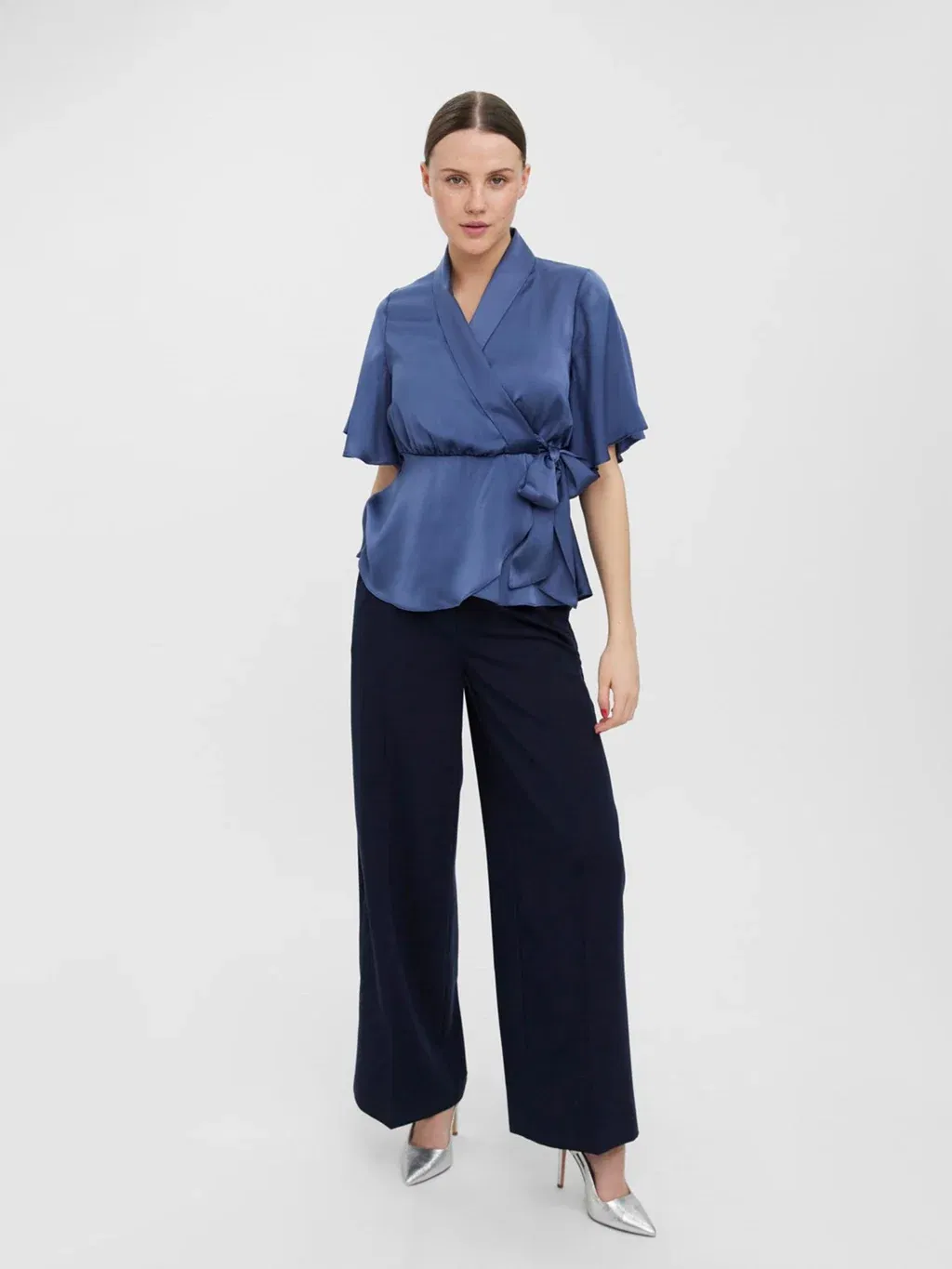 VERO MODA Satynowa kopertowa bluzka (XS)
