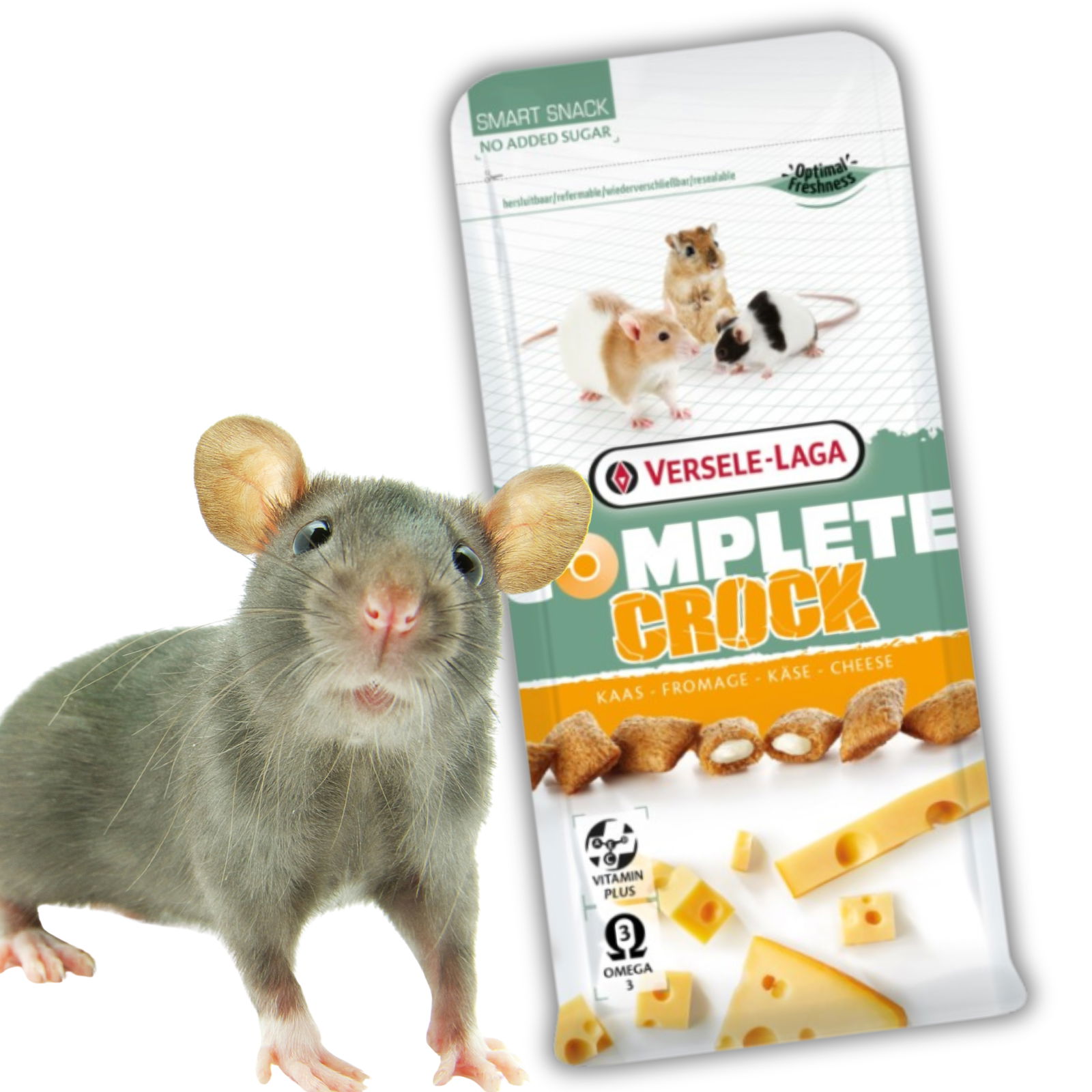 Przysmak serowy dla królików i gryzoni Versele-Laga Crock Cheese to smaczna przekąska w formie chrupiących „poduszeczek” z miękkim, serowym nadzieniem. Atrakcyjna forma i intensywny smak sprawiają, że przysmak jest chętnie pobierany przez zwierzęta.