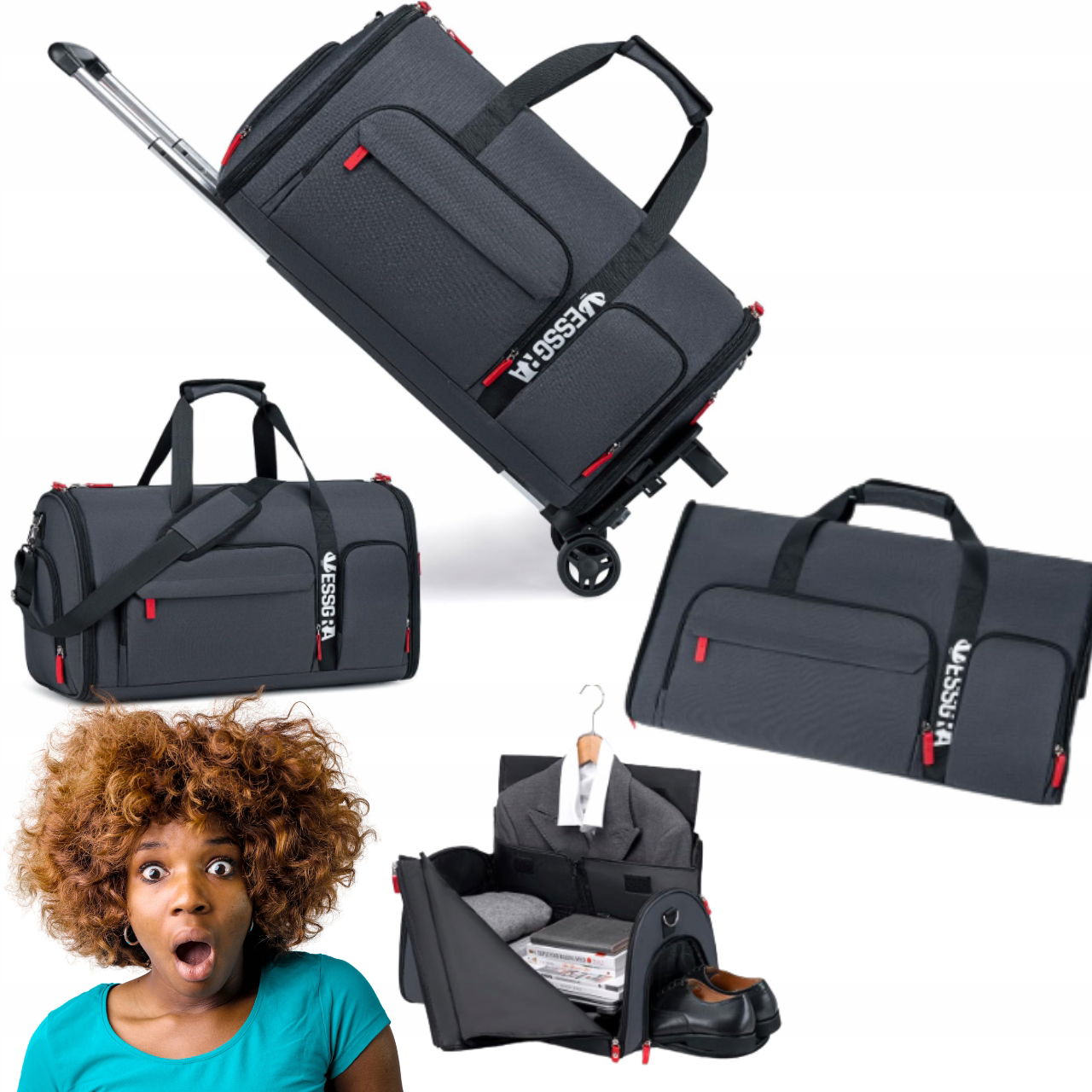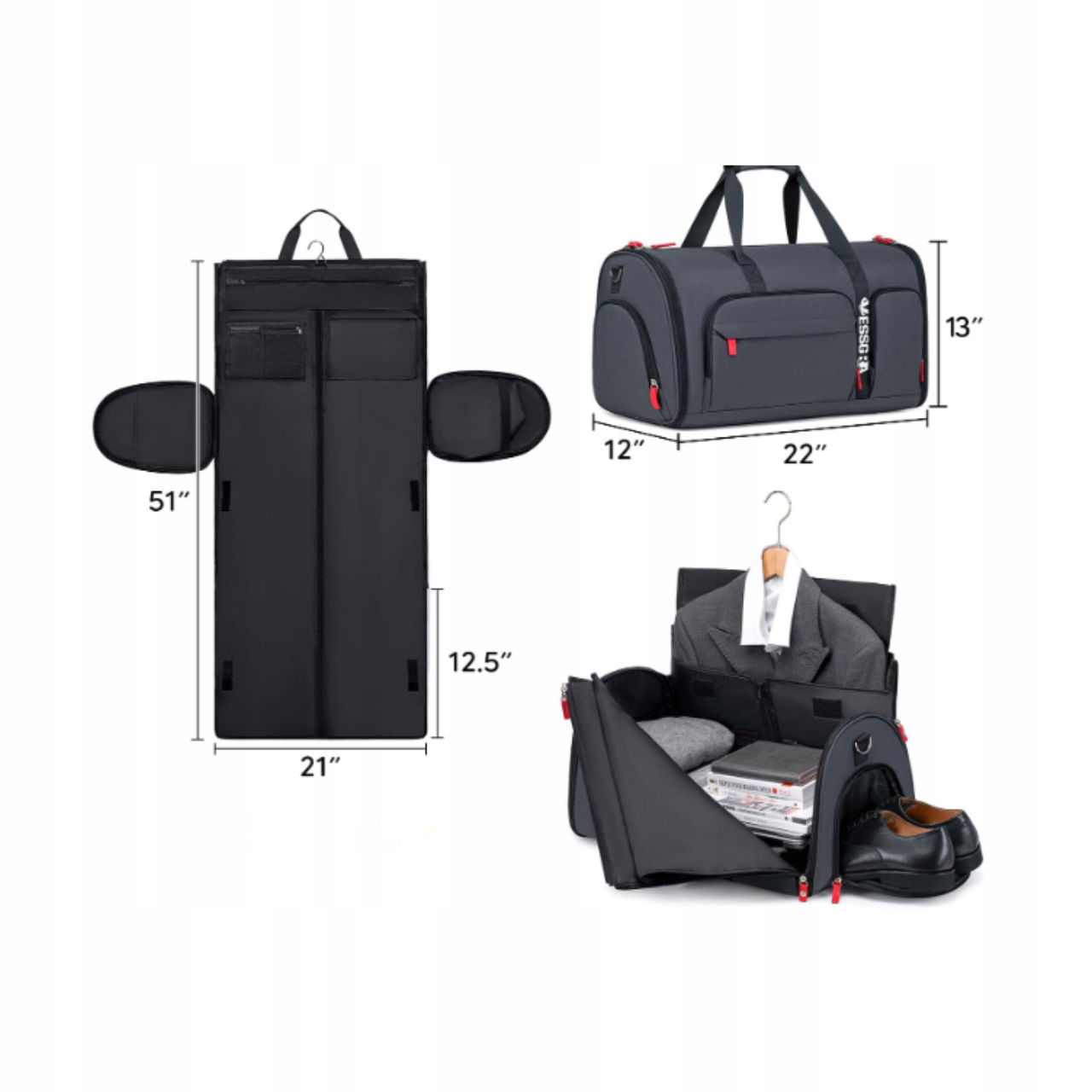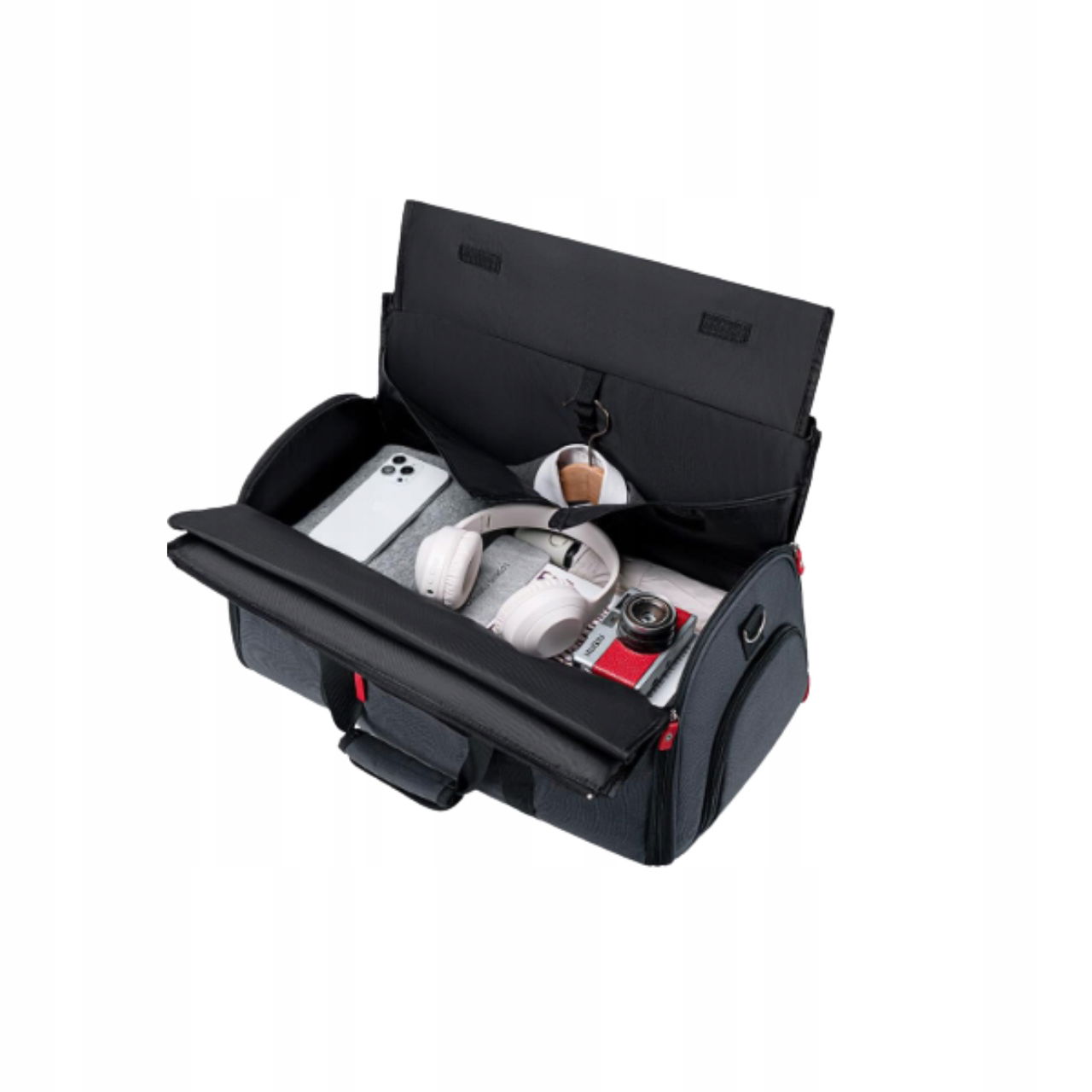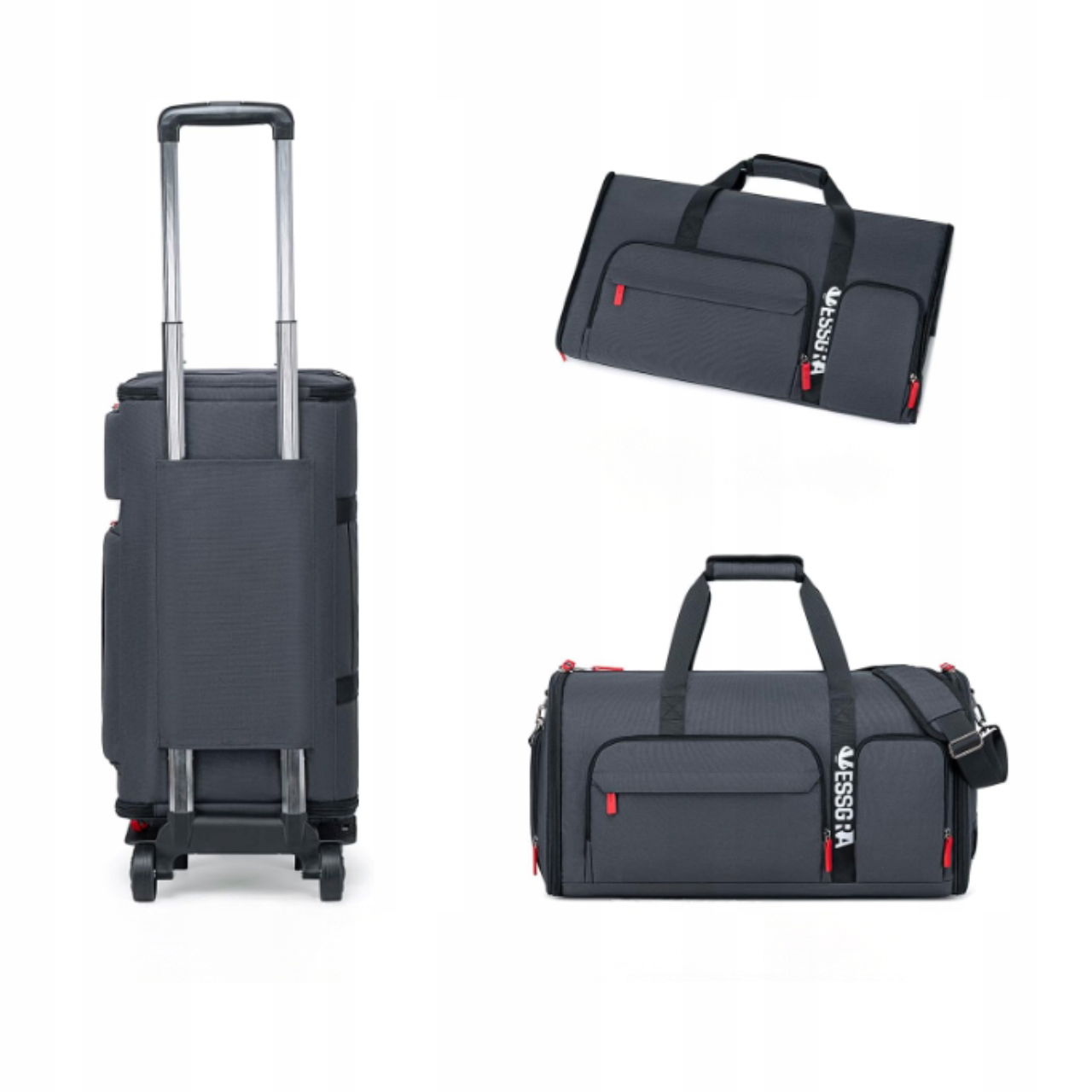 - Funkcja: torba + pokrowiec na ubrania