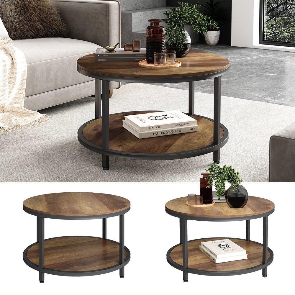 VICCO Stolik kawowy Dąb 80 x 80 cm Duży ,Okrągły, Ontario