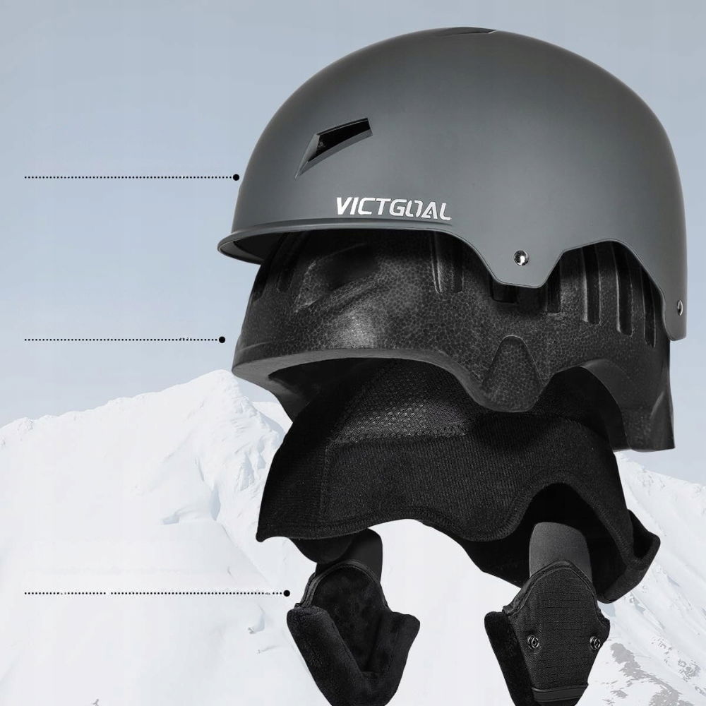 ✨VICTGOAL Kask narciarski snowboardowy regulowany rozmiar L, szary✨