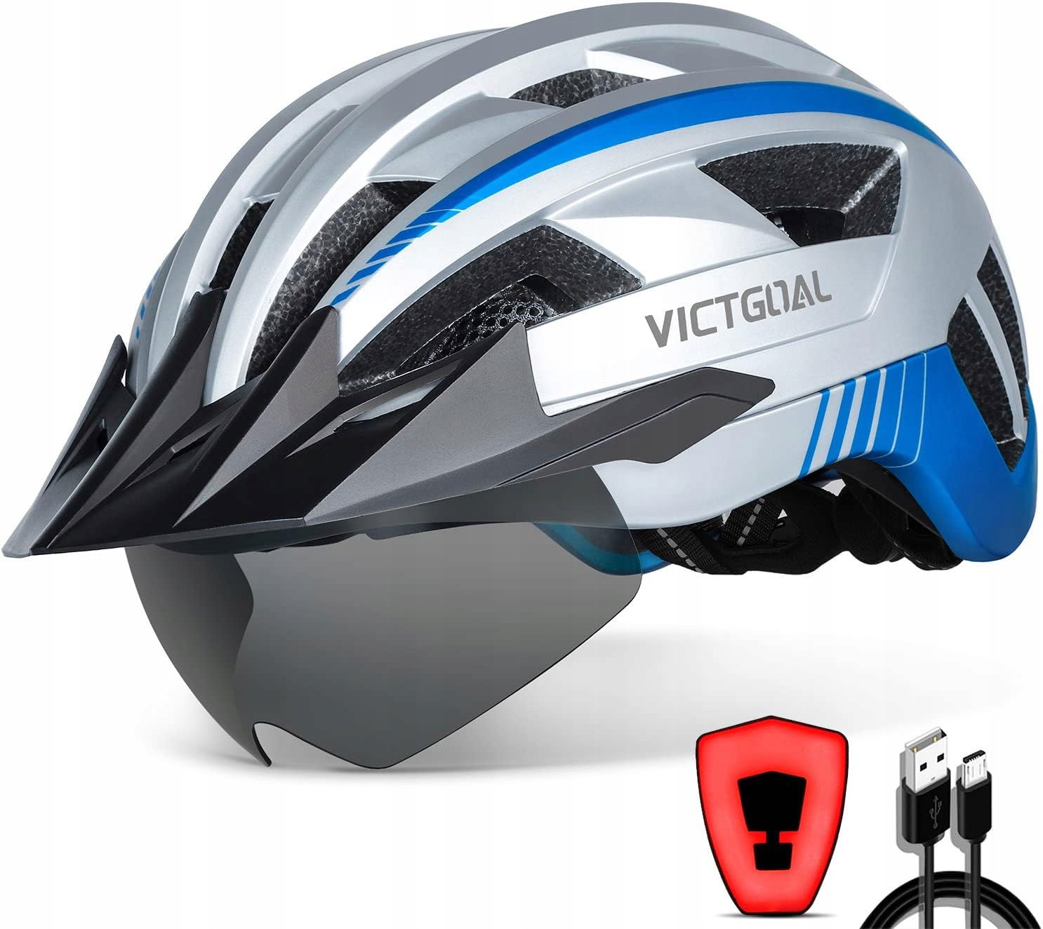VICTGOAL VG112 kask rowerowy MTB z blendą LED, rozmiar L 57-61 cm Srebrny