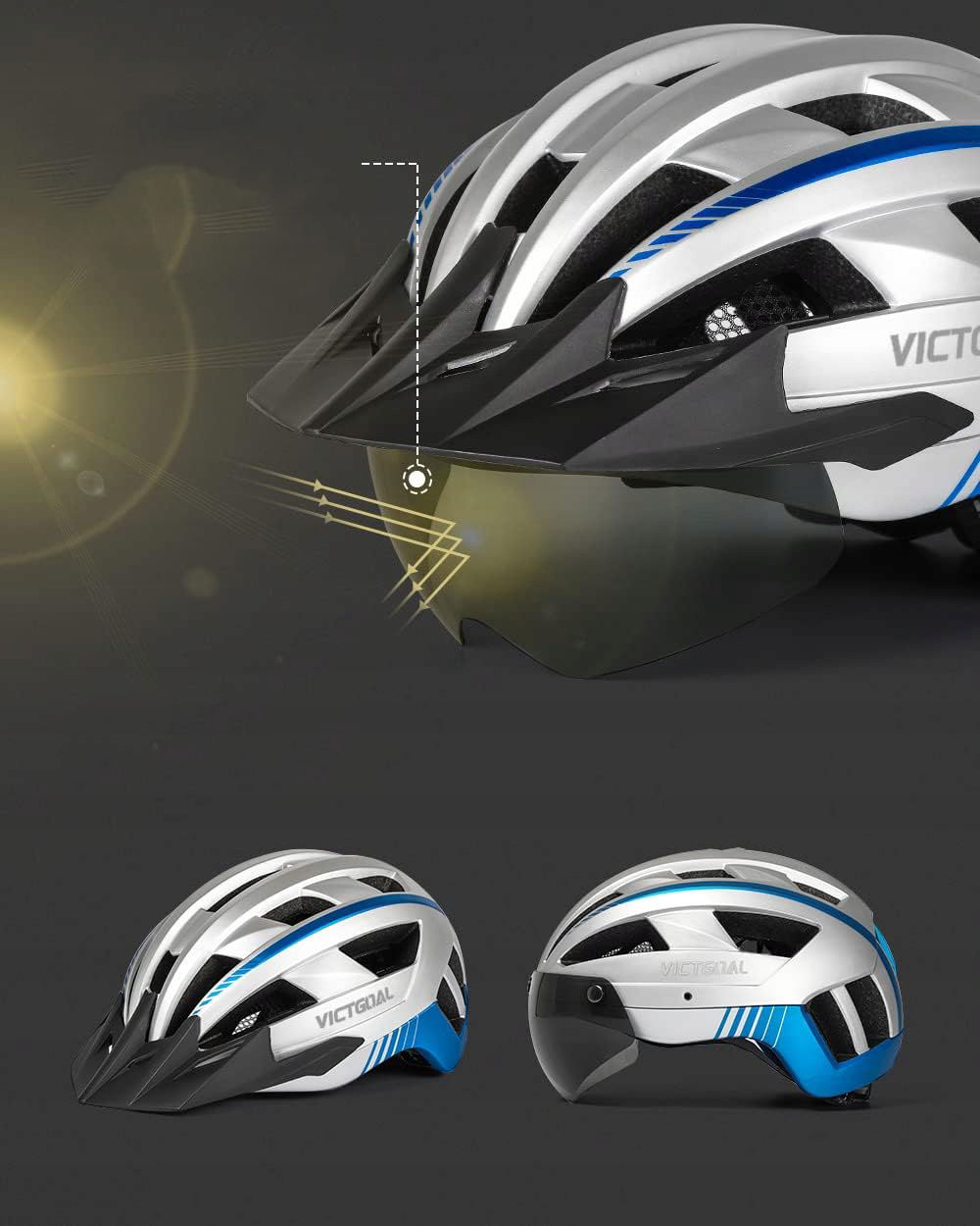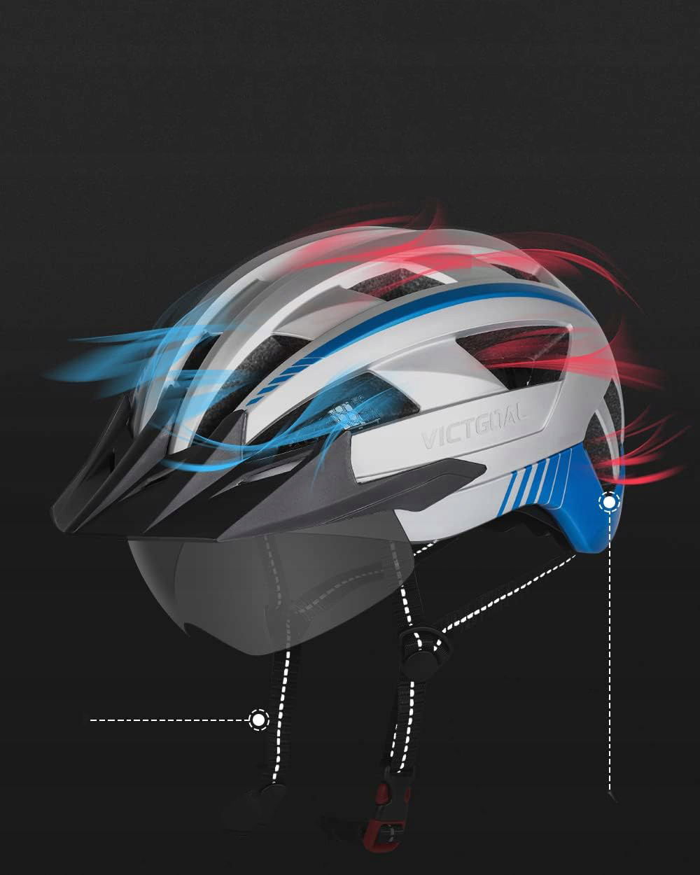 Profesjonalny kask rowerowy VICTGOAL został zaprojektowany z myślą o osobach jeżdżących rekreacyjnie oraz miłośnikach jazdy w terenie. Konstrukcja zapewnia zwiększoną ochronę tylnej części głowy, a praktyczny daszek chroni twarz przed słońcem, wiatrem oraz gałęziami podczas jazdy po leśnych trasach.