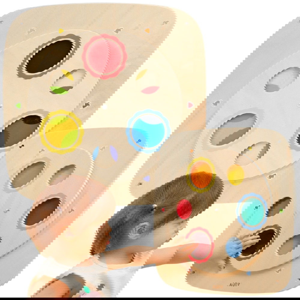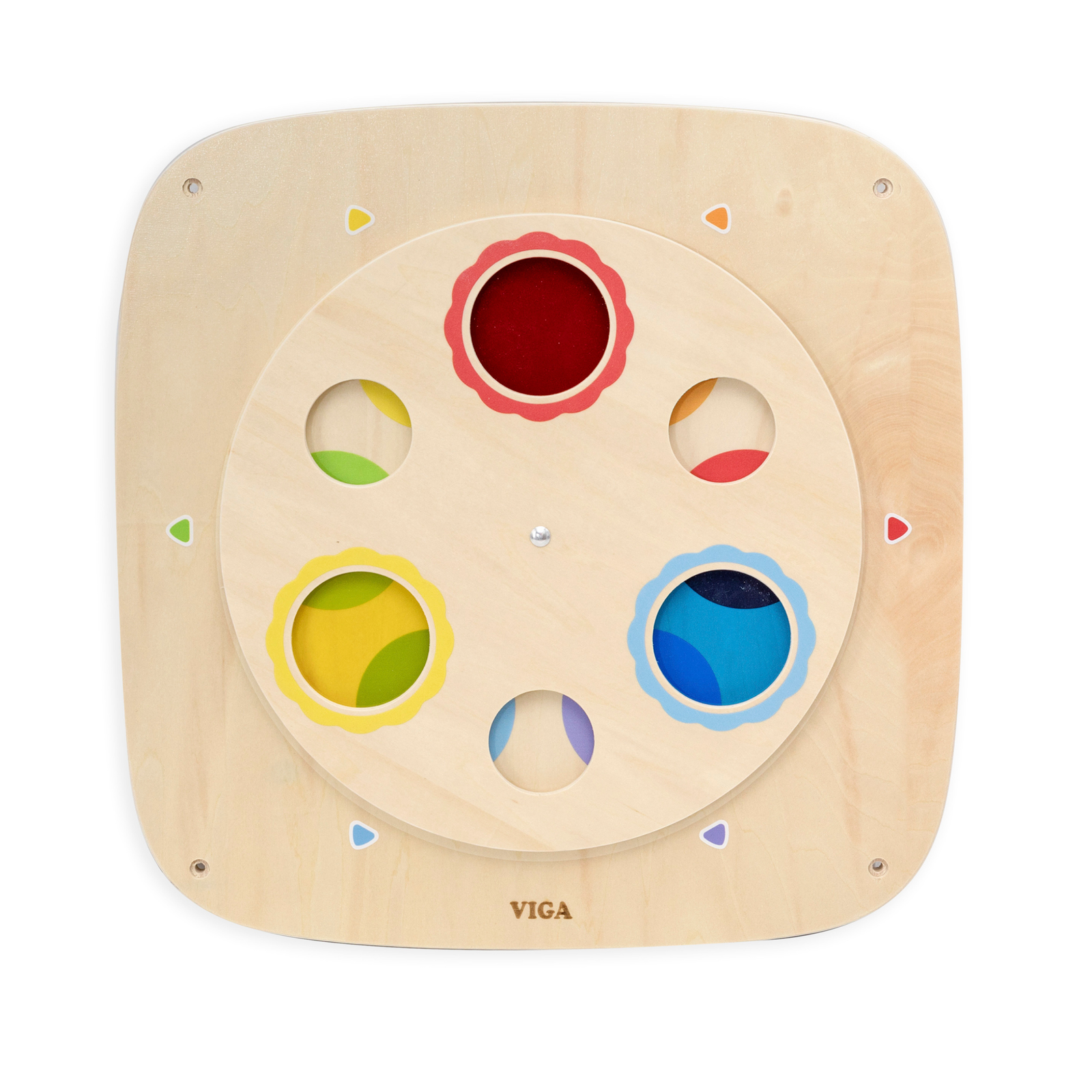 Odkryj magiczny świat kolorów z tą interaktywną tablicą drewnianą od VIGA! Ta edukacyjna zabawka została stworzona, aby w zabawny i praktyczny sposób nauczyć dzieci teorii kolorów oraz zależności przyczynowo-skutkowych. Dzięki obracanemu górnemu panelowi, dziecko może eksperymentować z łączeniem kolorów, tworząc nowe odcienie. Panel jest trwały, bezpieczny i łatwy w montażu na ścianie, co pozwala zaoszczędzić miejsce na podłodze. To idealny dodatek do pokoju malucha, przedszkola lub kącika zabaw.