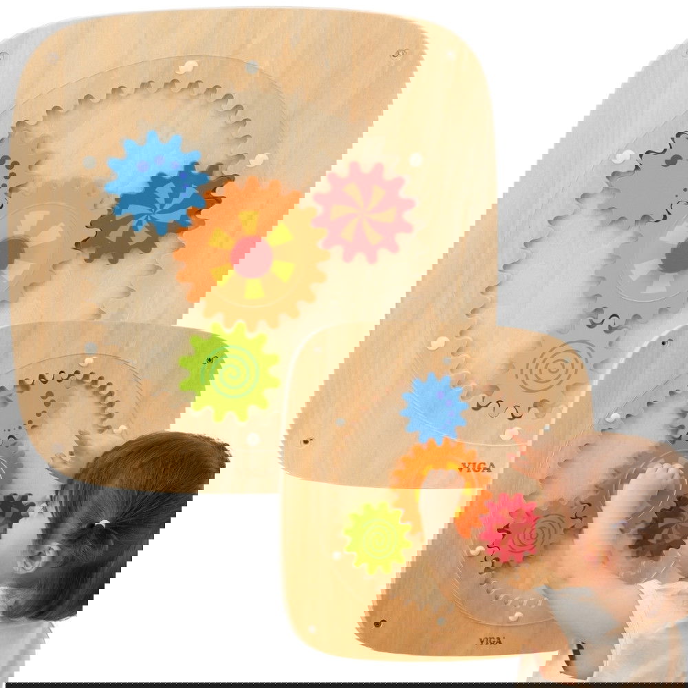 VIGA Drewniana Tablica z Kolorowymi Kołami Zębatymi