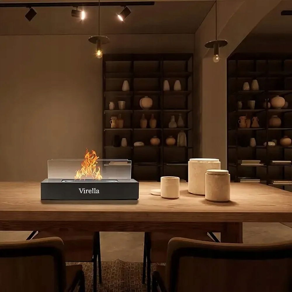 Biokominek Virella to elegancki, kompaktowy dodatek, który stwarza przytulny klimat na balkonie, tarasie, w ogrodzie i we wnętrzach. Działa bez komina, nie brudzi, nie śmierdzi – po prostu odpal i ciesz się ogniem.