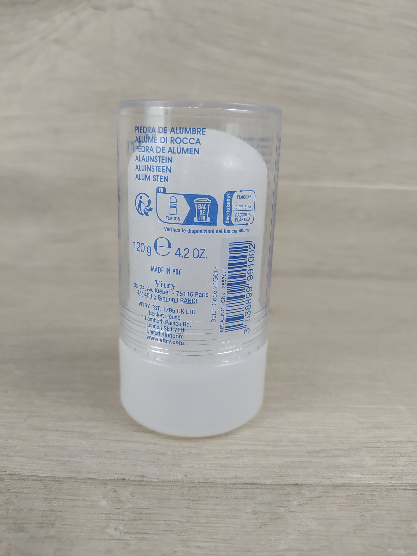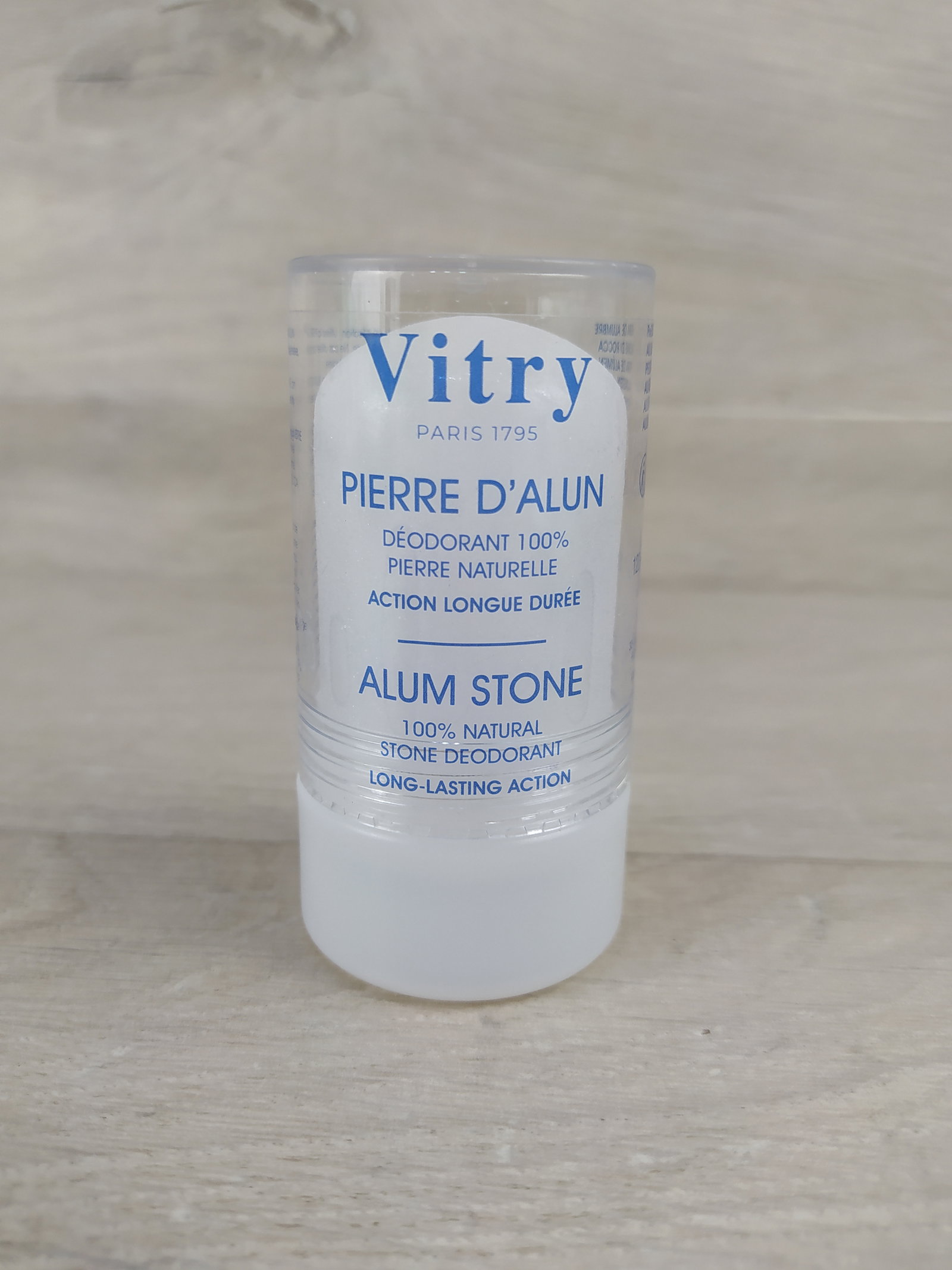 🧊 Vitry Pierre d'Alun 120 g – naturalny dezodorant w kamieniu W 100% naturalny dezodorant mineralny w formie kamienia ałunowego. Działa antybakteryjnie, neutralizuje nieprzyjemny zapach potu bez blokowania jego wydzielania. Odpowiedni dla skóry wrażliwej, bezzapachowy, bez alkoholu i konserwantów. Może być stosowany również po goleniu – działa ściągająco i łagodząco.