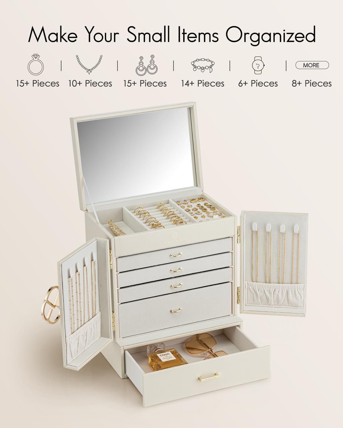 💎 VLANDO Duża Szkatułka na Biżuterię XXL – Styl Francuski | 6 Poziomów | Lustro